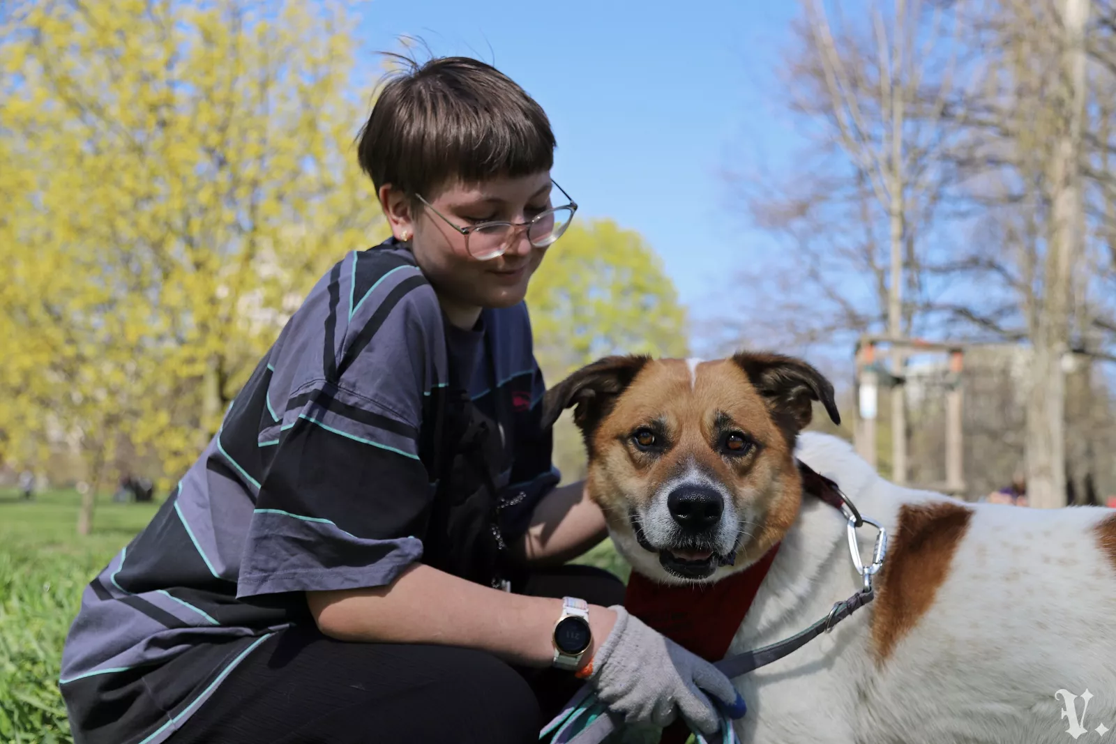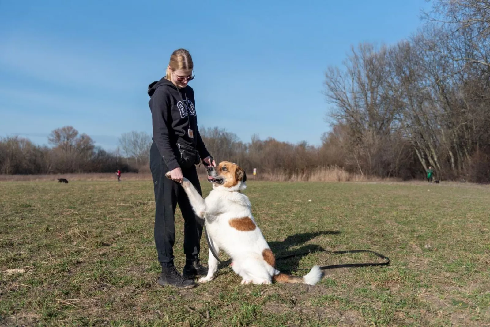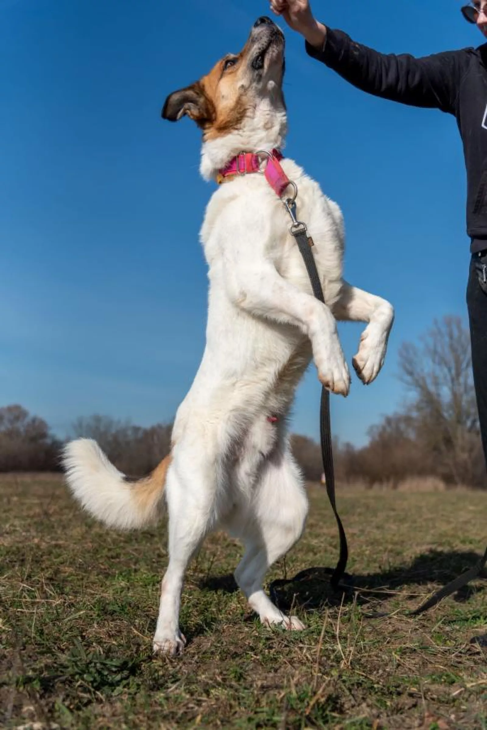 W domu mógłby się dogadać z odpowiednim towarzystwem po wcześniejszym zapoznaniu – są psy, które Byku uwielbia, i inne, którym woli dogadać z oddali :). Ponieważ bywa zaczepny wobec innych psów, potrzebuje opiekuna, który będzie w stanie moderować jego interakcje. Byczek potrafi odpuścić i zachować spokój z odpowiedniej odległości, gdy jest o to poproszony.