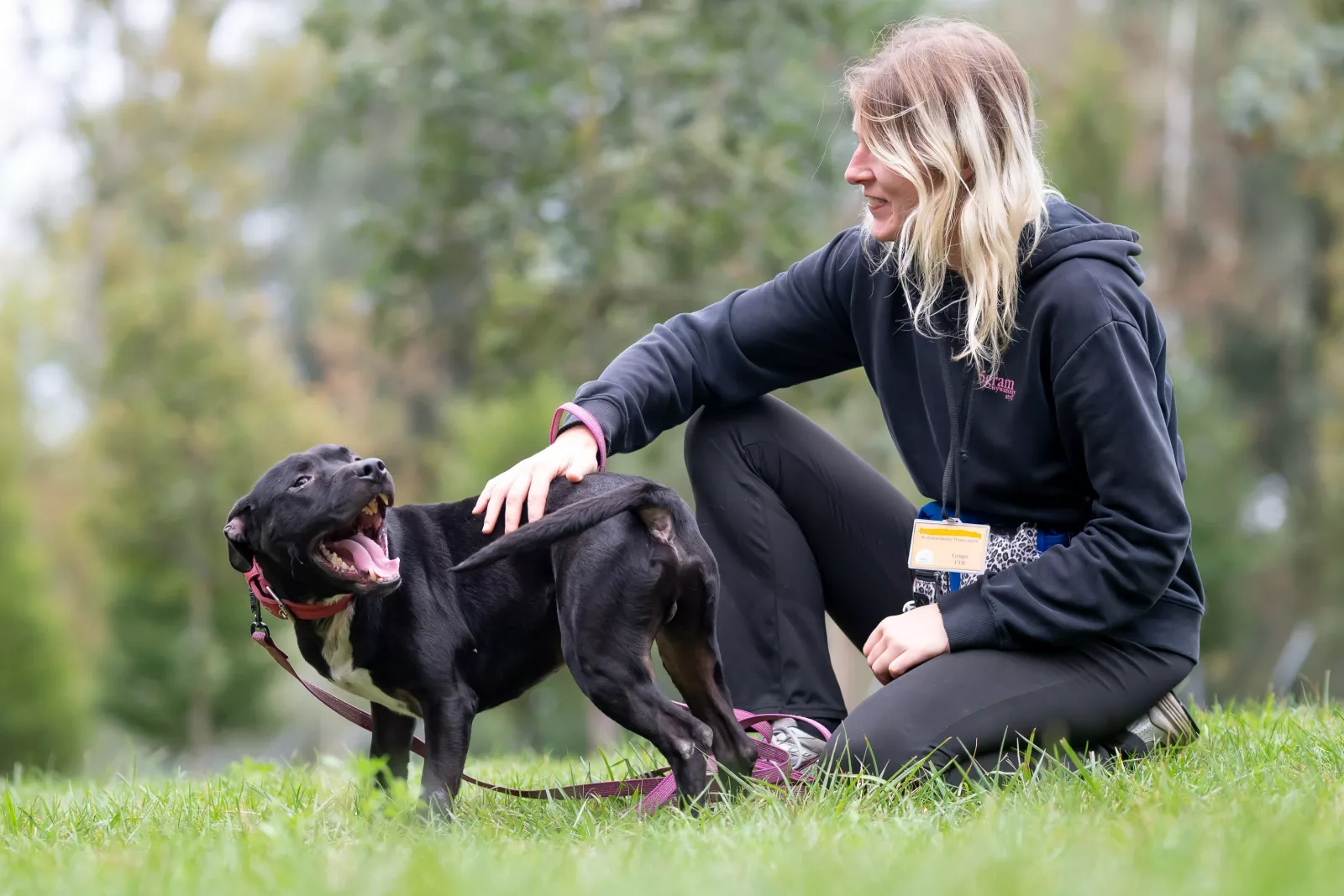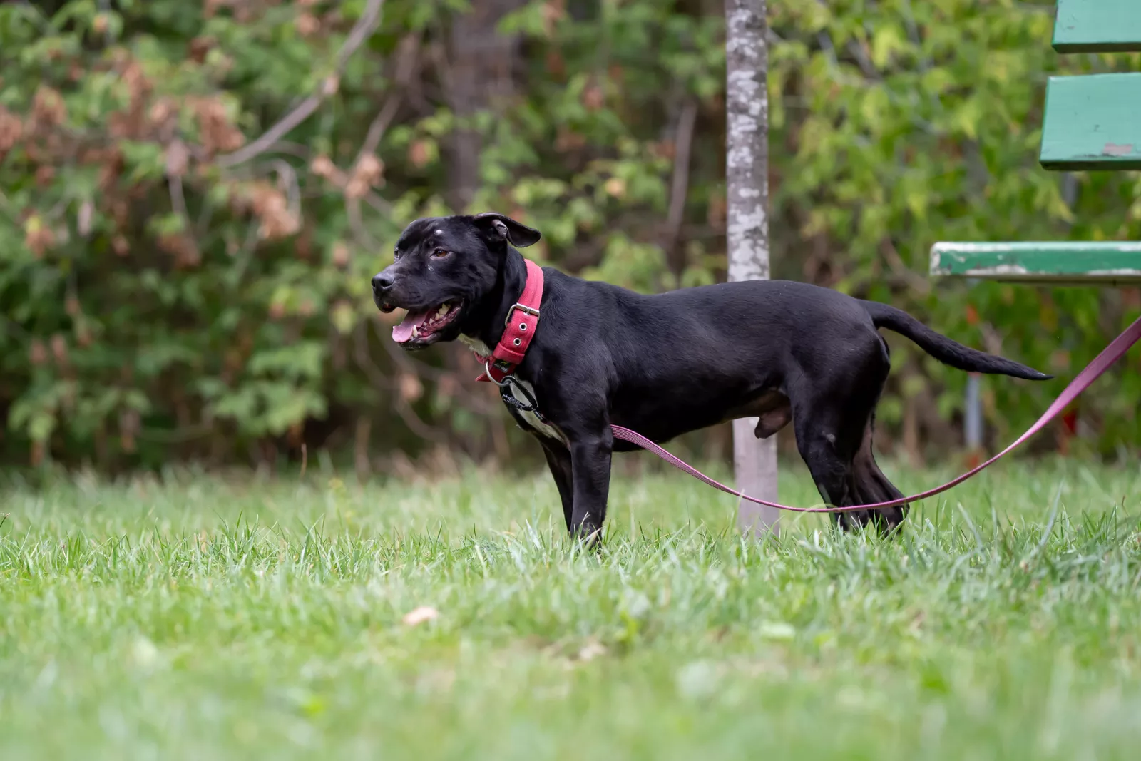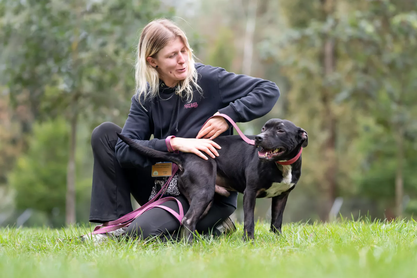 Aston jest młodym, energicznym psem o atletycznej budowie ciała i pięknym, czarnym umaszczeniu. Cieszy się na widok zaufanego opiekuna i bardzo chętnie wychodzi na spacer. Na początku Aston potrafi mocno pociągnąć na smyczy jednak gdy już odejdzie od schroniska i zejdą z niego emocje potrafi się wyciszyć. Wtedy łapie kontakt z człowiekiem i w pełni korzysta ze spaceru.
