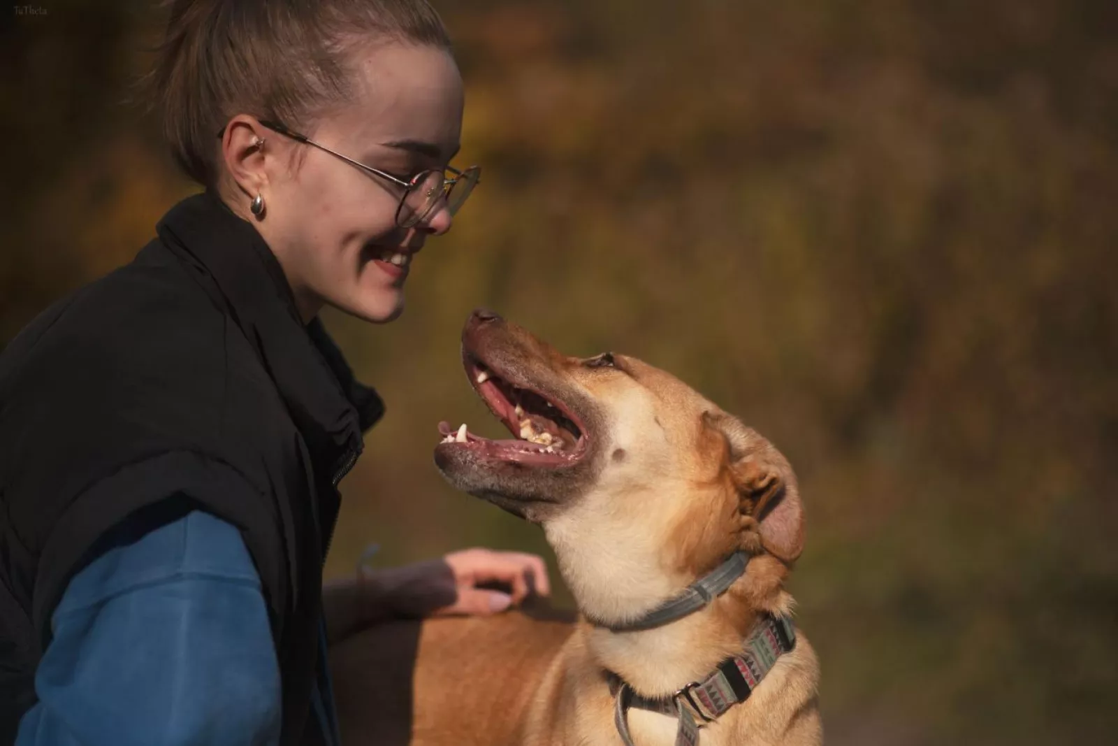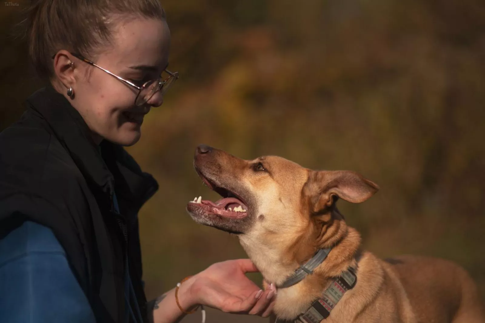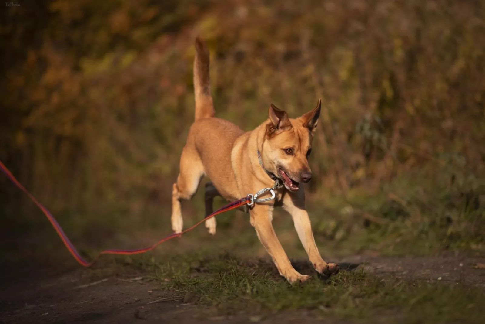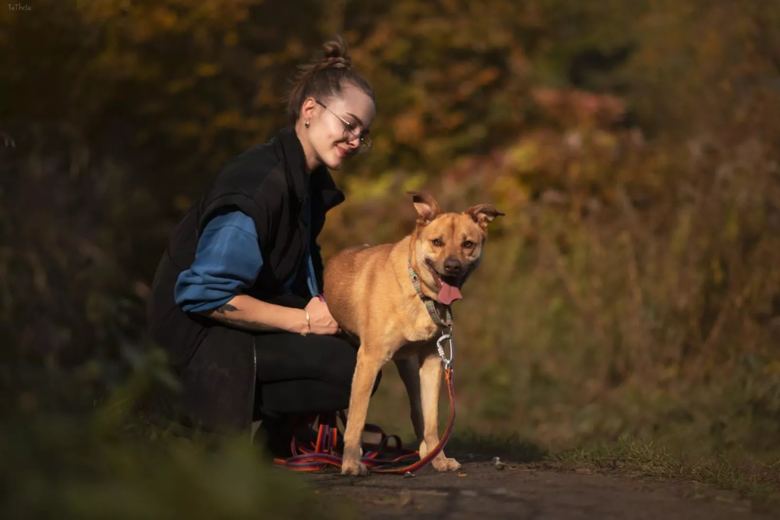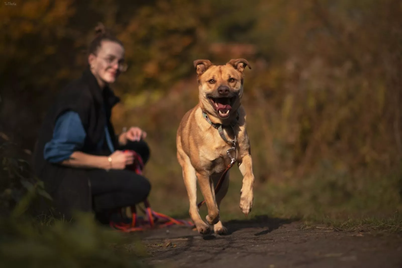 Spacery z Texasem są prawdziwą przyjemnością – wtedy odżywa i cieszy się całym sobą. Prawdopodobnie opuszczając mieszkanie odczuwał ulgę. Pięknie chodzi na smyczy, mija ludzi i psy, nad spokojnym mijaniem ptaków jeszcze pracujemy. Szybko uczy się psio-psiej komunikacji, kontakty z psami bywają dla niego stresujące, chociaż z psimi podbiegaczami radzi sobie bardzo dobrze. Chętnie eksploruje, węszy, tapla się wodzie i szuka smaczków w trawie. Pilnuje się przewodnika, chętnie przybiega na zawołanie.
