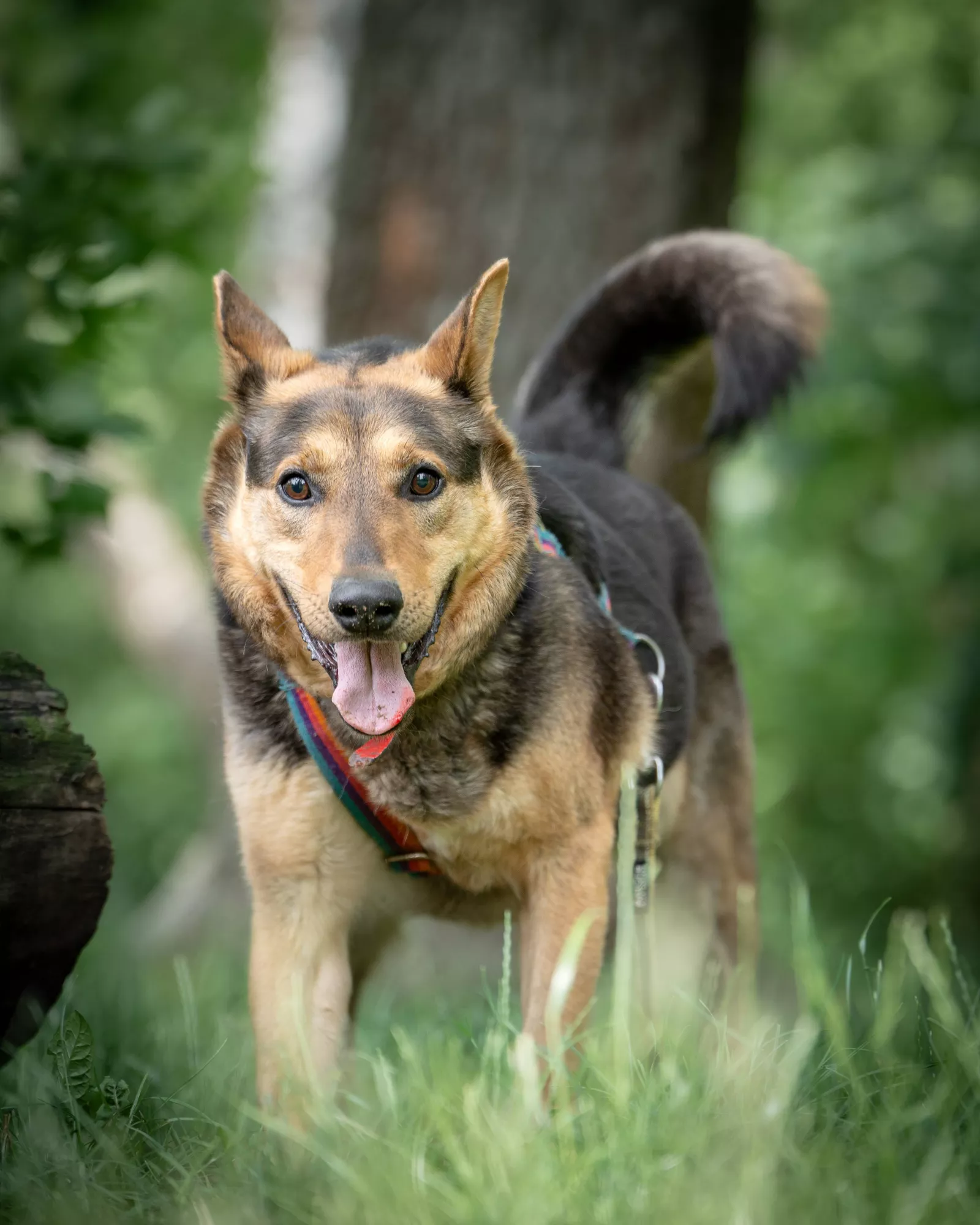 Jest z nami już prawie dwa lata i przez ten okres zrobił ogromne postępy. Coraz lepiej radzi sobie w trudniejszych sytuacjach, uczy się panować nad emocjami i spokojniej reaguje na otoczenie. Choć w towarzystwie innych psów wciąż bywa niepewny, z pomocą wolontariuszy nauczył się lepiej odnajdywać w takich sytuacjach. Zaczął też pojawiać się na akcjach Adoptuj Warszawiaka, które odbywają się w różnych miejscach w Warszawie. Grzecznie podróżuje na nie autobusem czy samochodem.