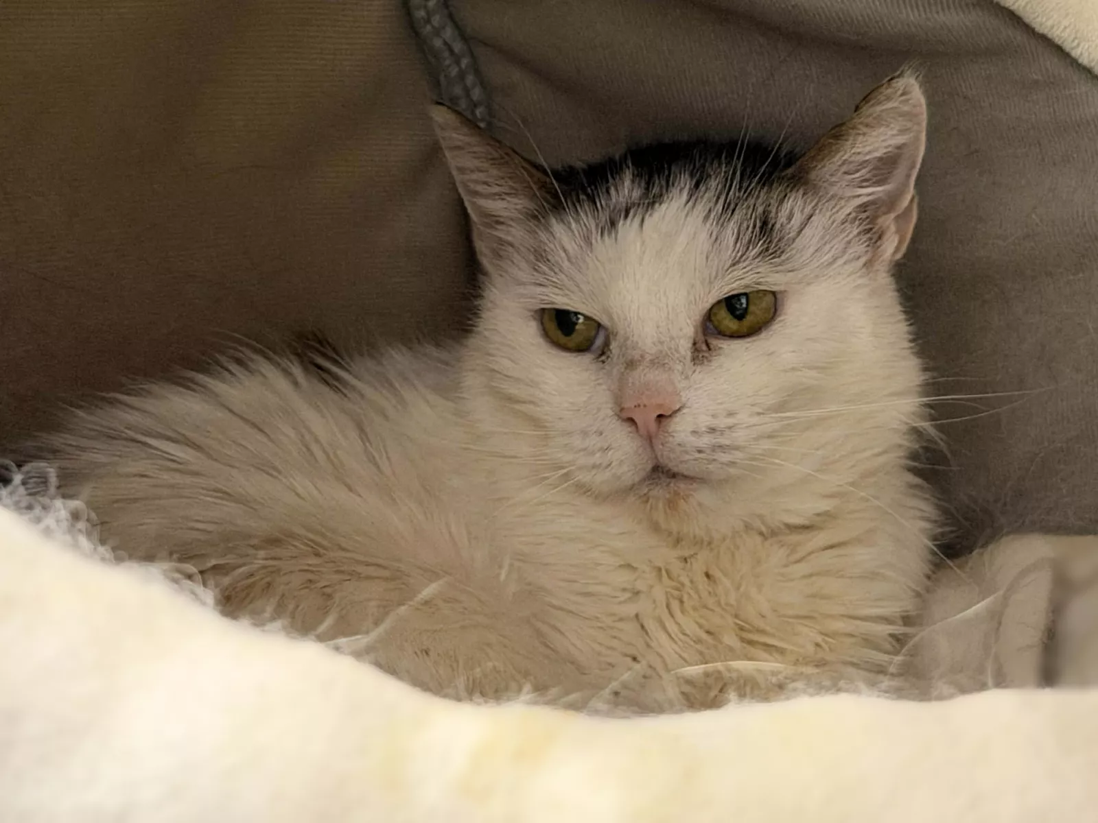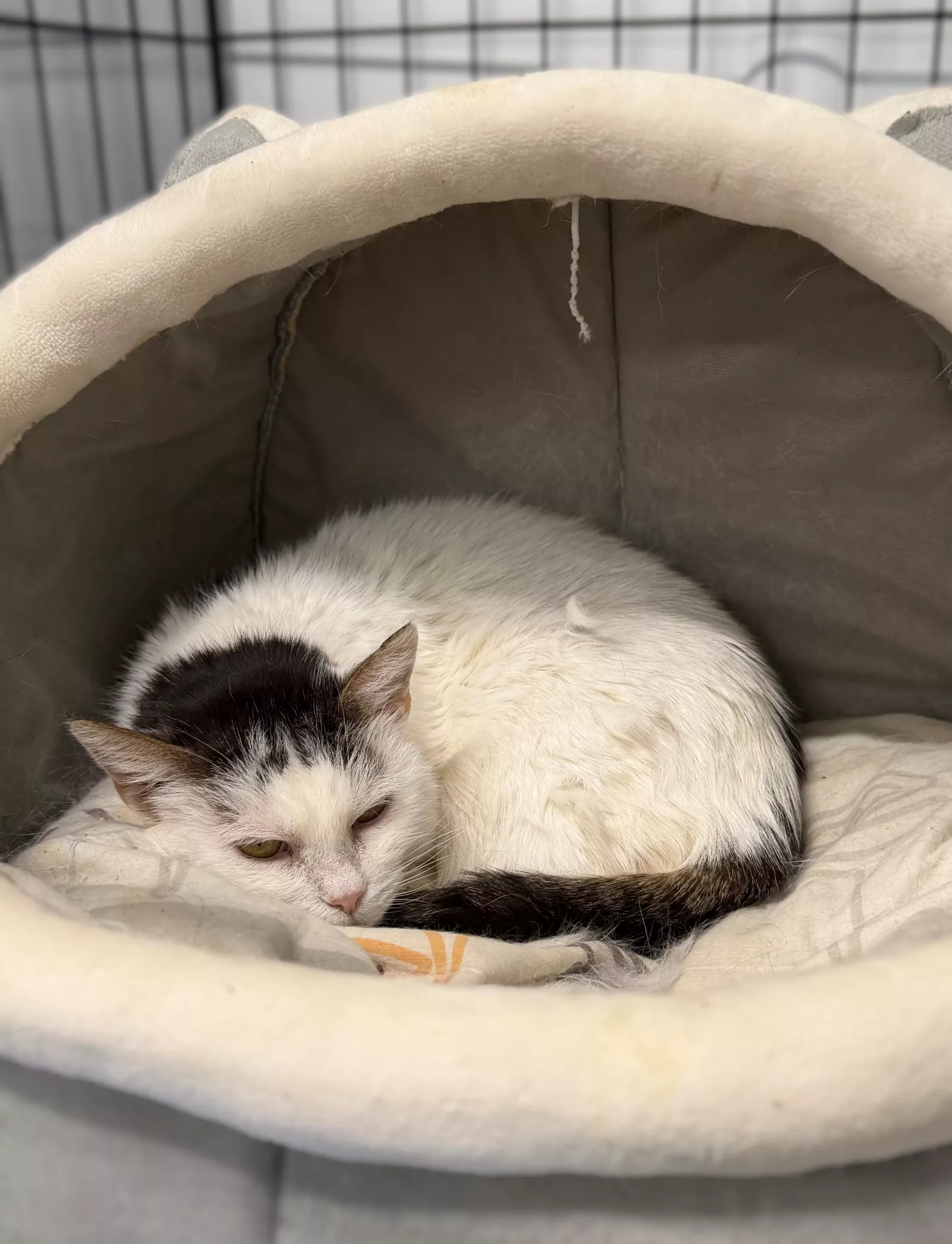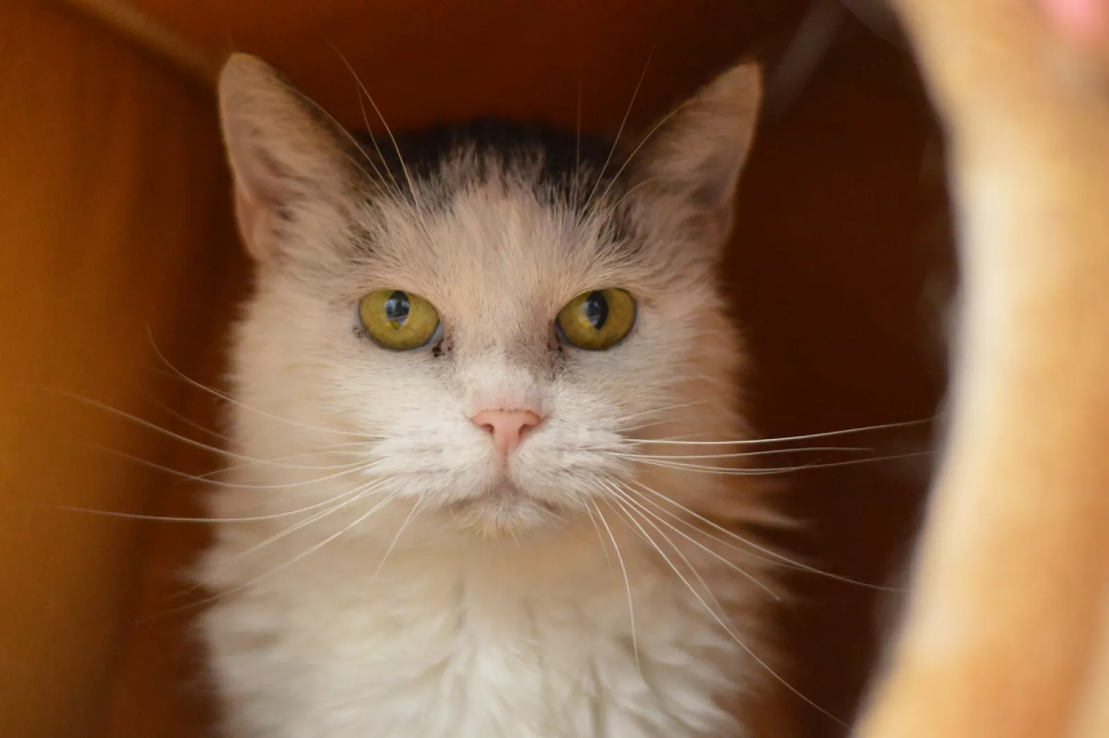 Na pierwszy rzut oka Jokka może sprawiać wrażenie kotki dzikiej i nieufnej. W schronisku chowa się i stara się trzymać ludzi na dystans. To jednak nie jest jej prawdziwa natura – to tylko reakcja na ogromną stratę i strach.