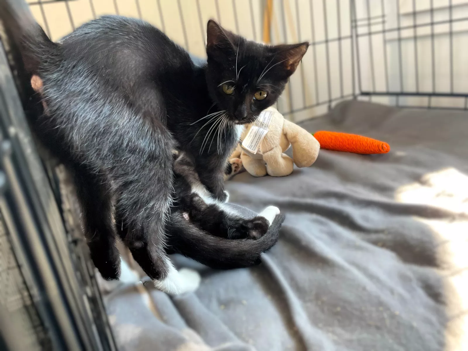 Billie to młoda koteczka, która do schroniska trafiła razem ze swoim bratem Marleyem. Od początku pokazuje, że człowiek jest dla niej najważniejszy. Chętnie podchodzi po głaski, szuka uwagi i bliskości. To wrażliwa, czuła dziewczynka, która zasługuje na dom pełen miłości i bezpieczeństwa.