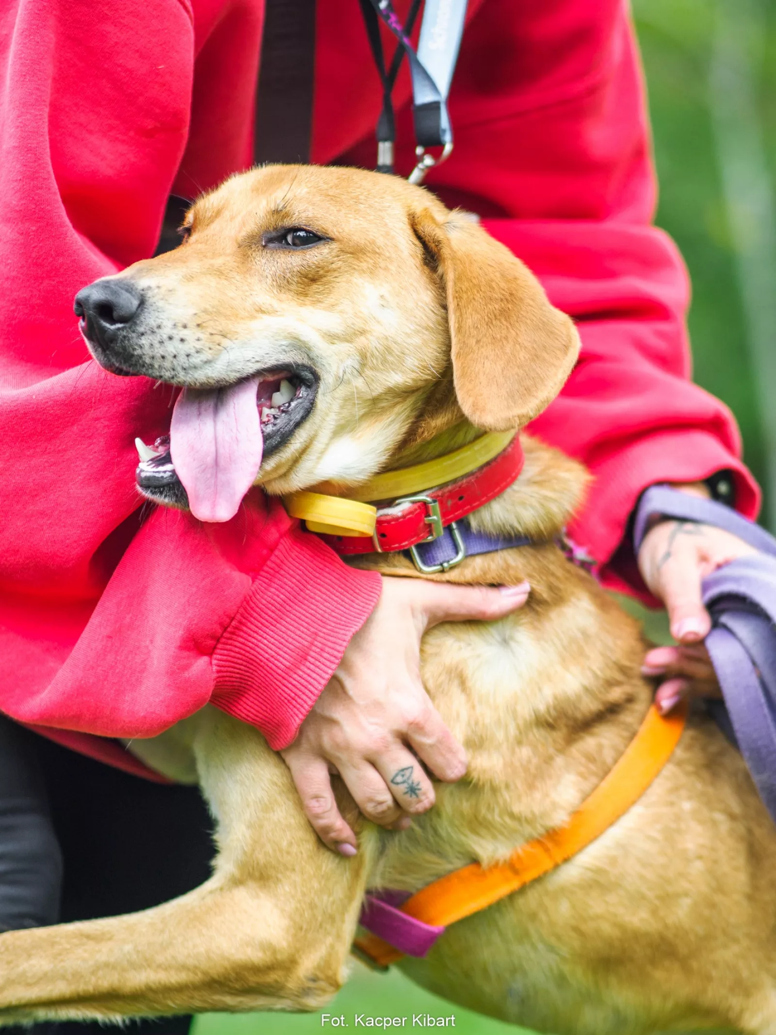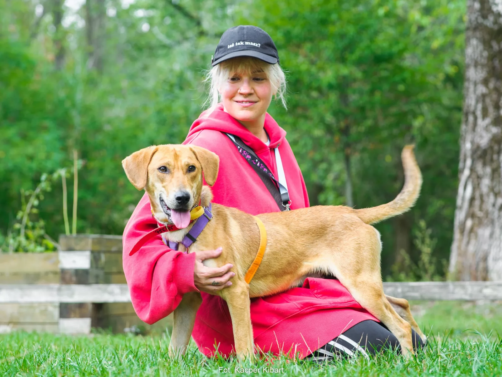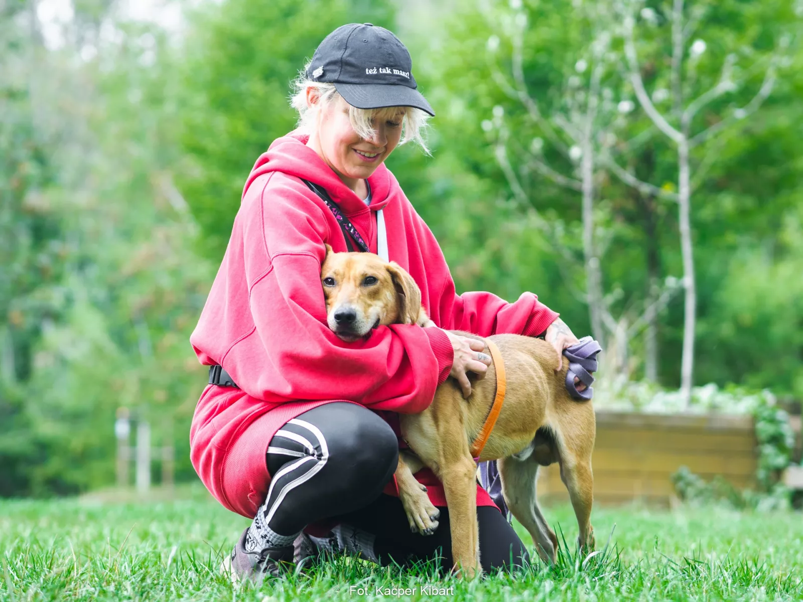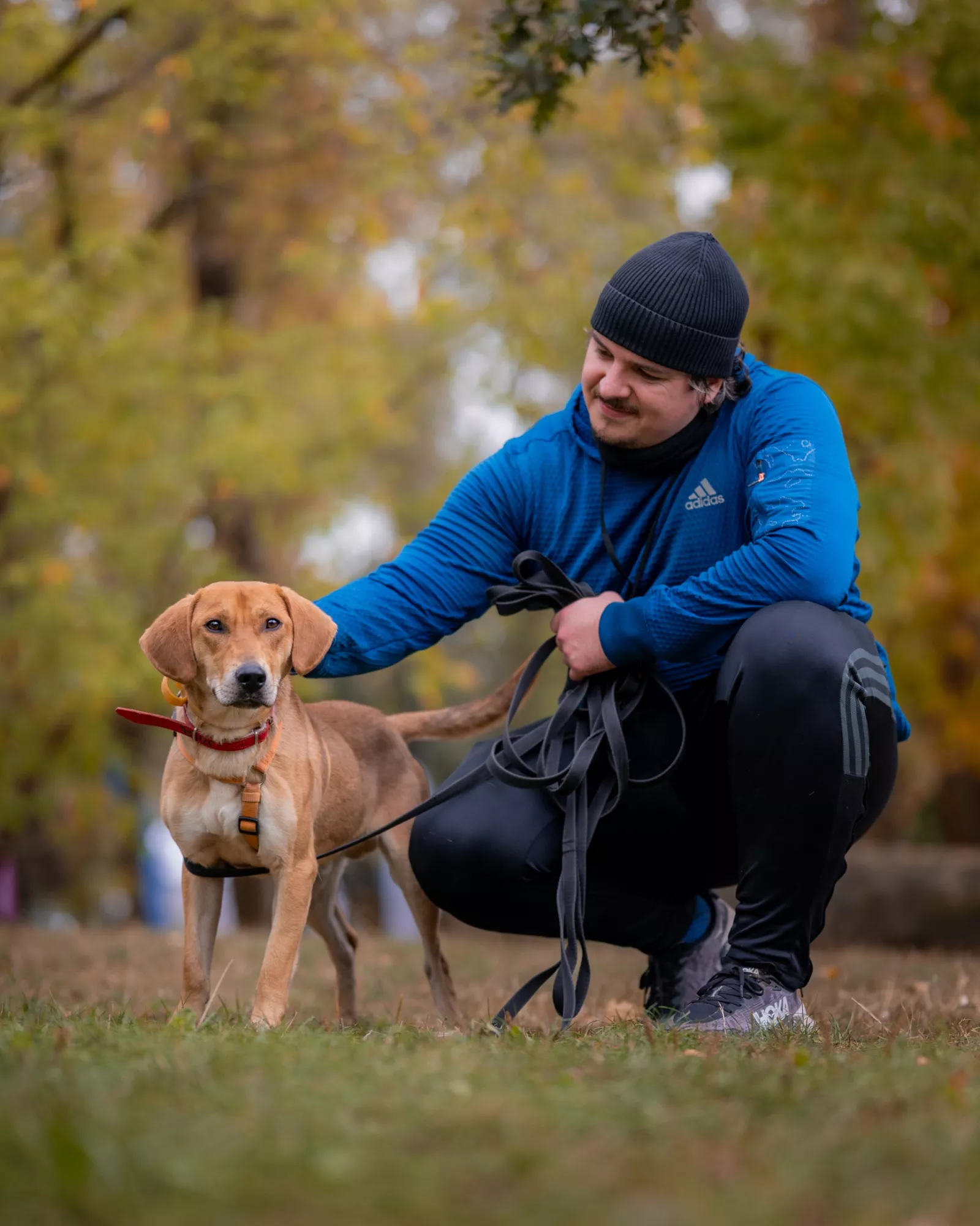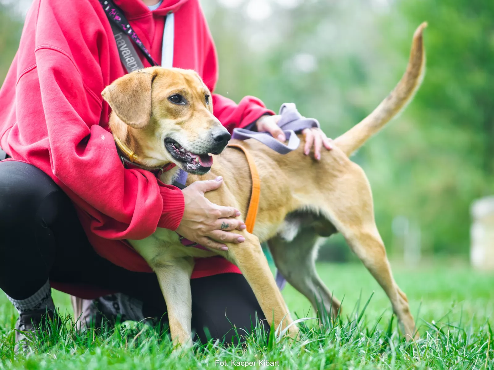 Już przy pierwszym spotkaniu przywitał nas radośnie – sam nadstawiał się do głaskania i bez problemu włożył główkę w szelki. Na spacerze zachowywał się, jakbyśmy znali się od zawsze – ciekawski, przytulaśny, radosny, pełen życia. Uwielbia eksplorować i korzysta z każdej chwili na odkrywanie świata, a że jest młodziutkim psiakiem, to ciekawi go dosłownie wszystko, więc wszystko wymaga skrupulatnego obwąchania. Czasem potrafi pociągnąć, kiedy coś go zafascynuje, ale szybko wraca do kontaktu z opiekunem, reaguje na przywołanie.