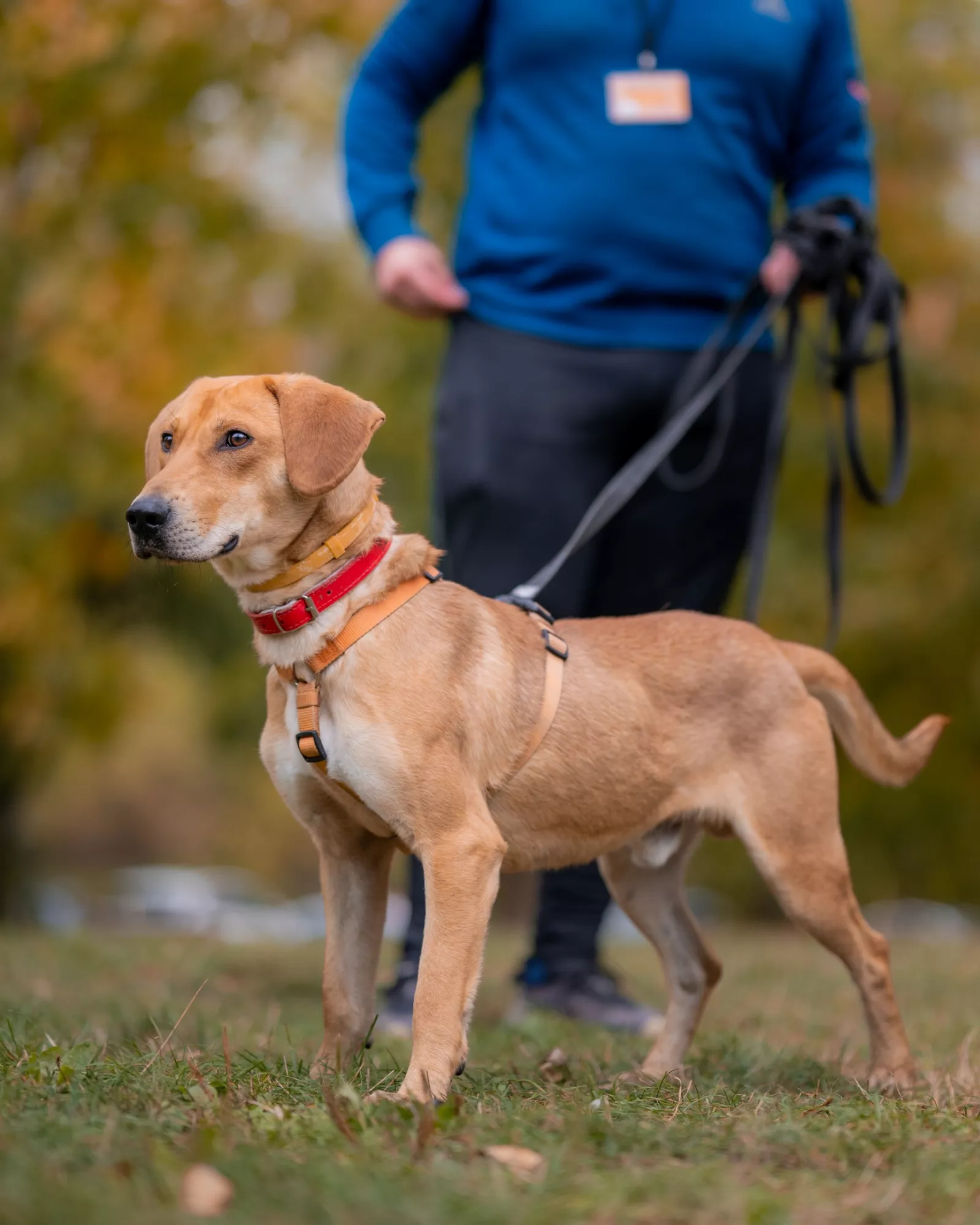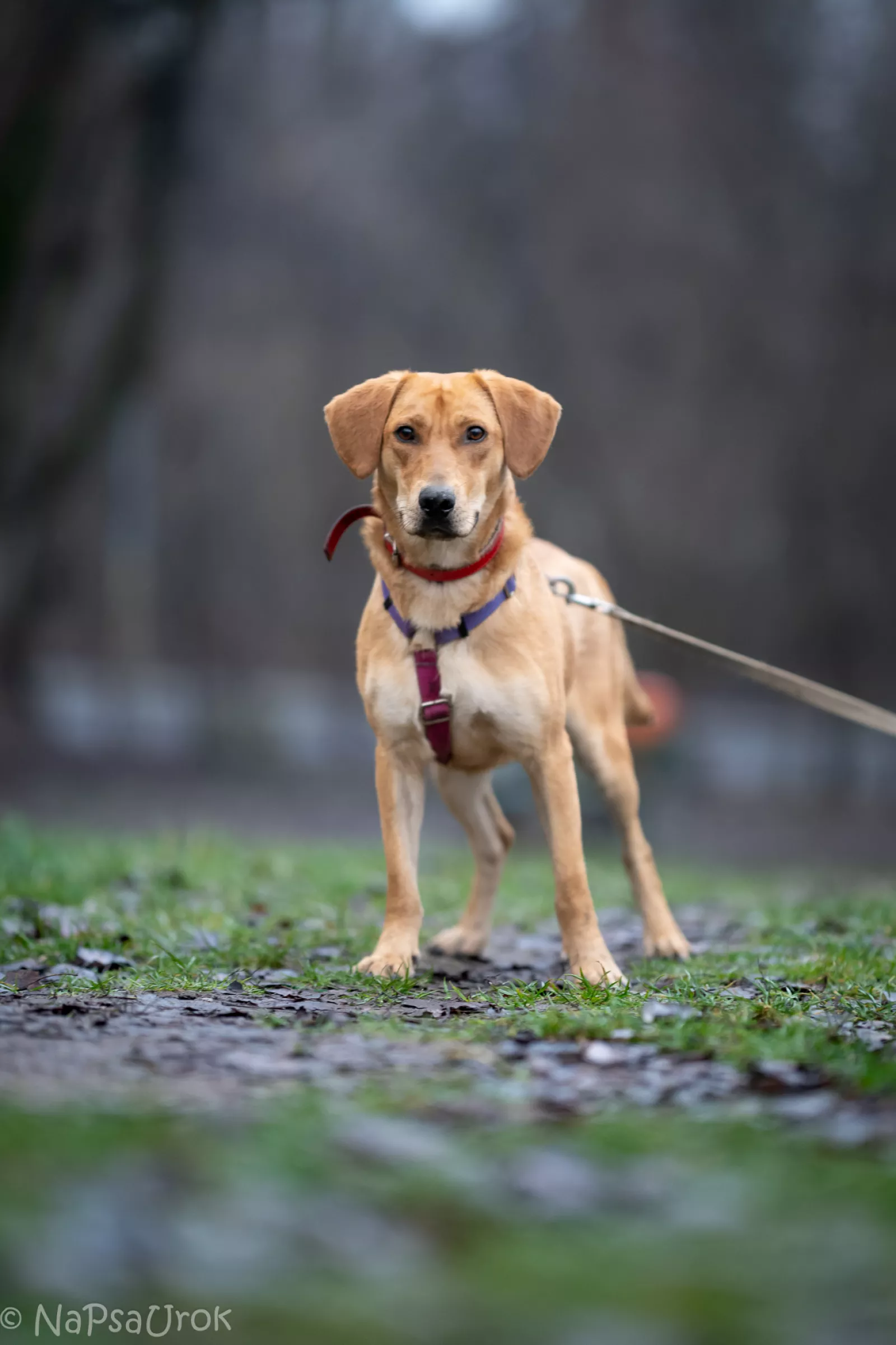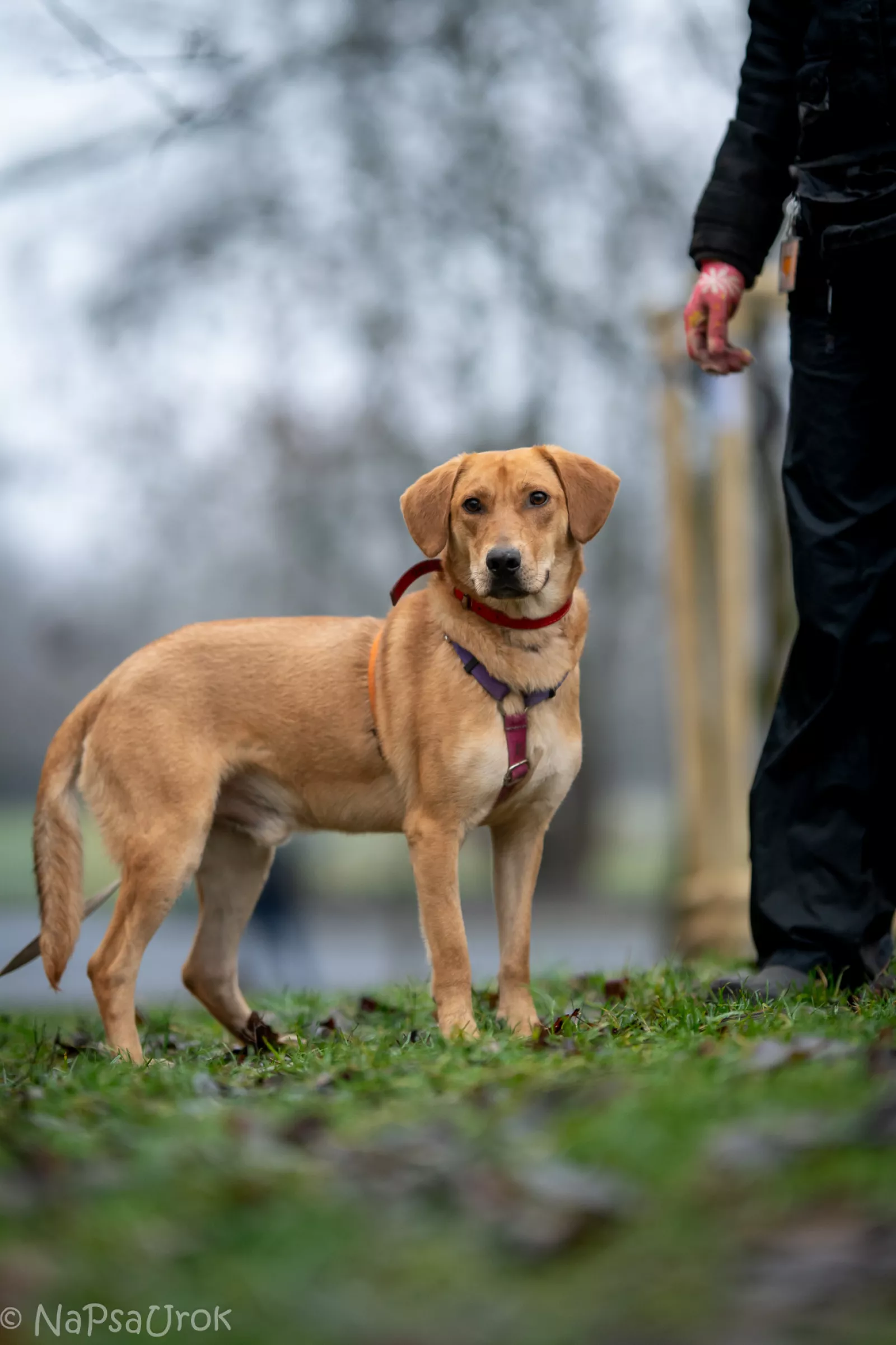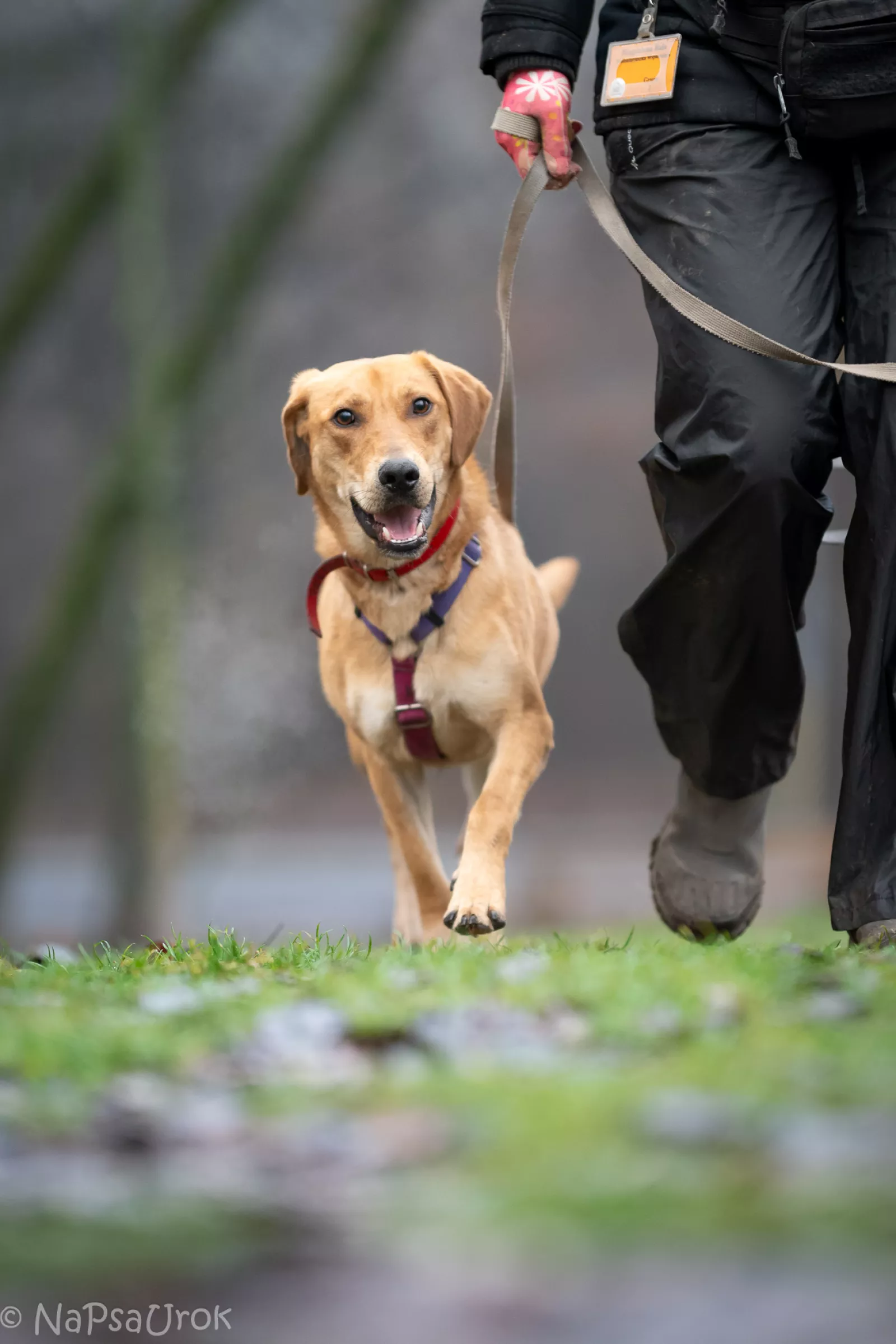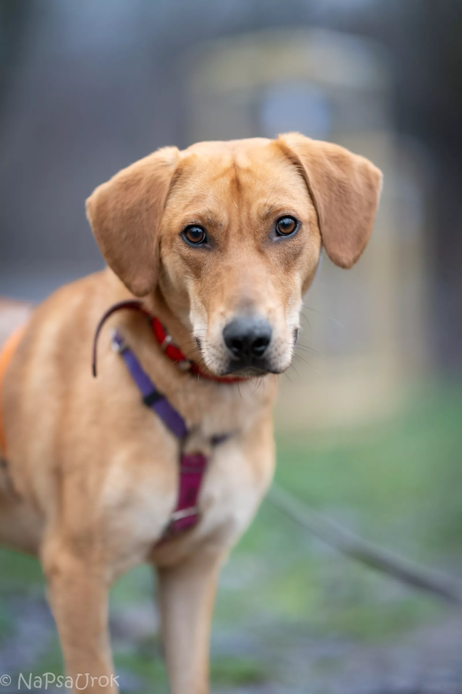 Już przy pierwszym spotkaniu przywitał nas radośnie – sam nadstawiał się do głaskania i bez problemu włożył główkę w szelki. Na spacerze zachowywał się, jakbyśmy znali się od zawsze – ciekawski, przytulaśny, radosny, pełen życia. Uwielbia eksplorować i korzysta z każdej chwili na odkrywanie świata, a że jest młodziutkim psiakiem, to ciekawi go dosłownie wszystko, więc wszystko wymaga skrupulatnego obwąchania. Czasem potrafi pociągnąć, kiedy coś go zafascynuje, ale szybko wraca do kontaktu z opiekunem, reaguje na przywołanie.