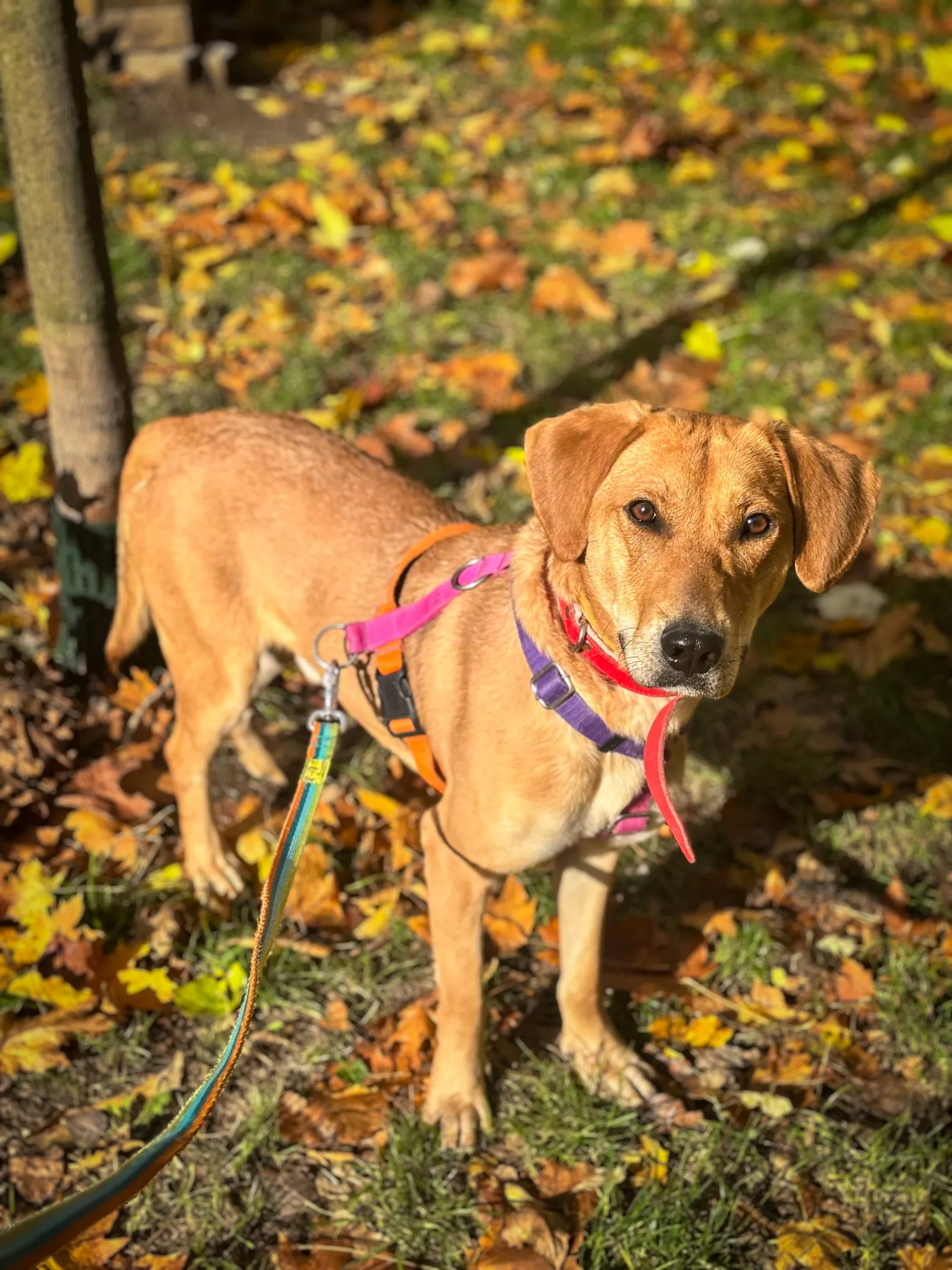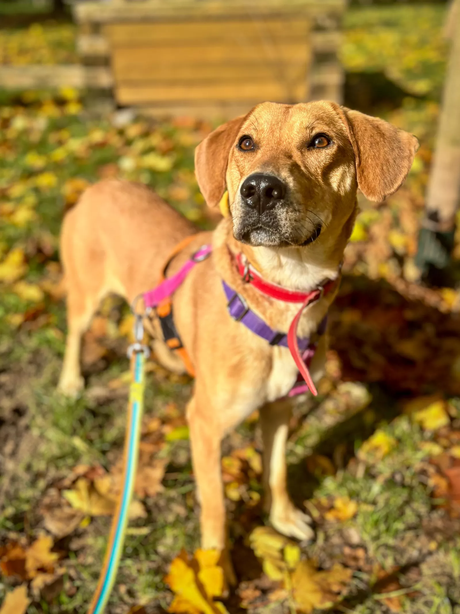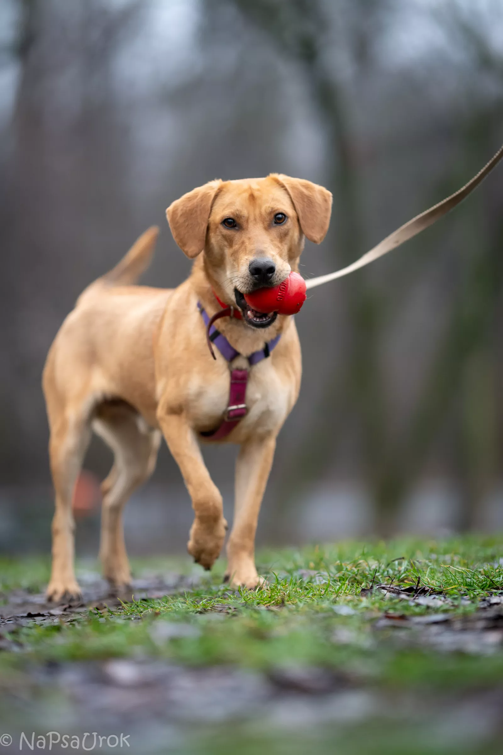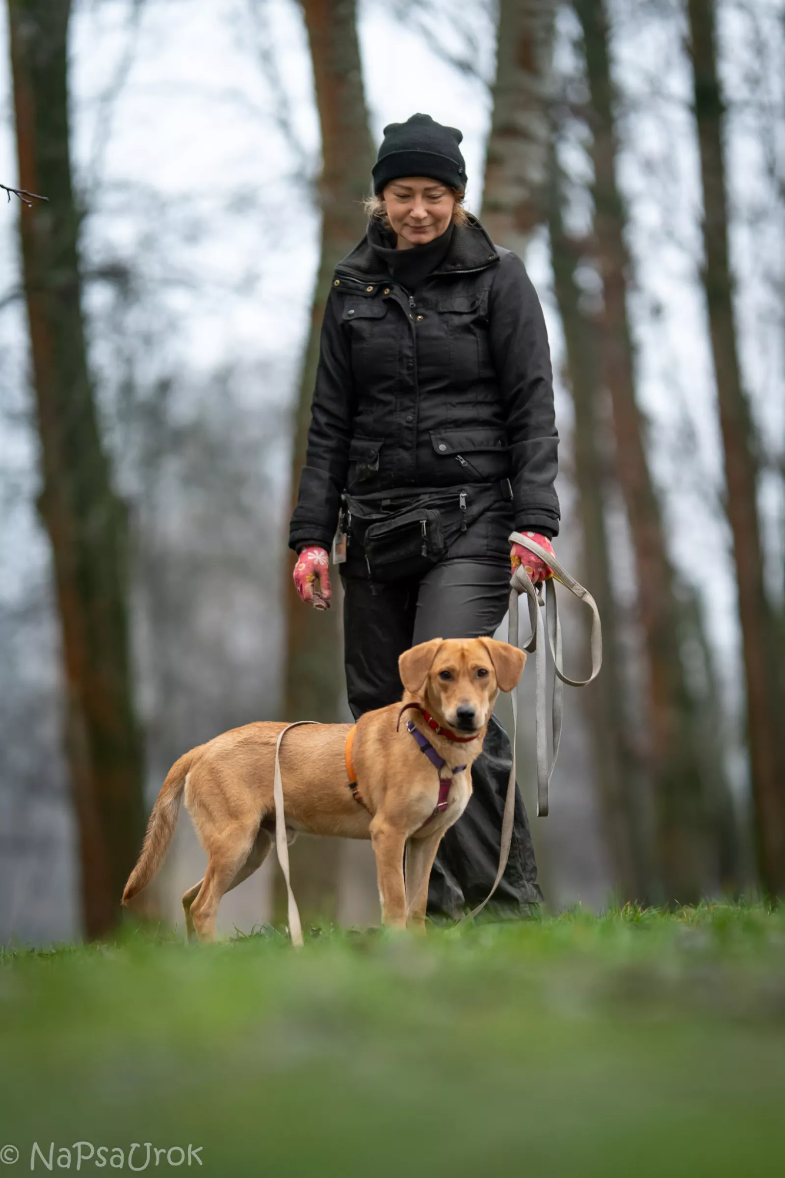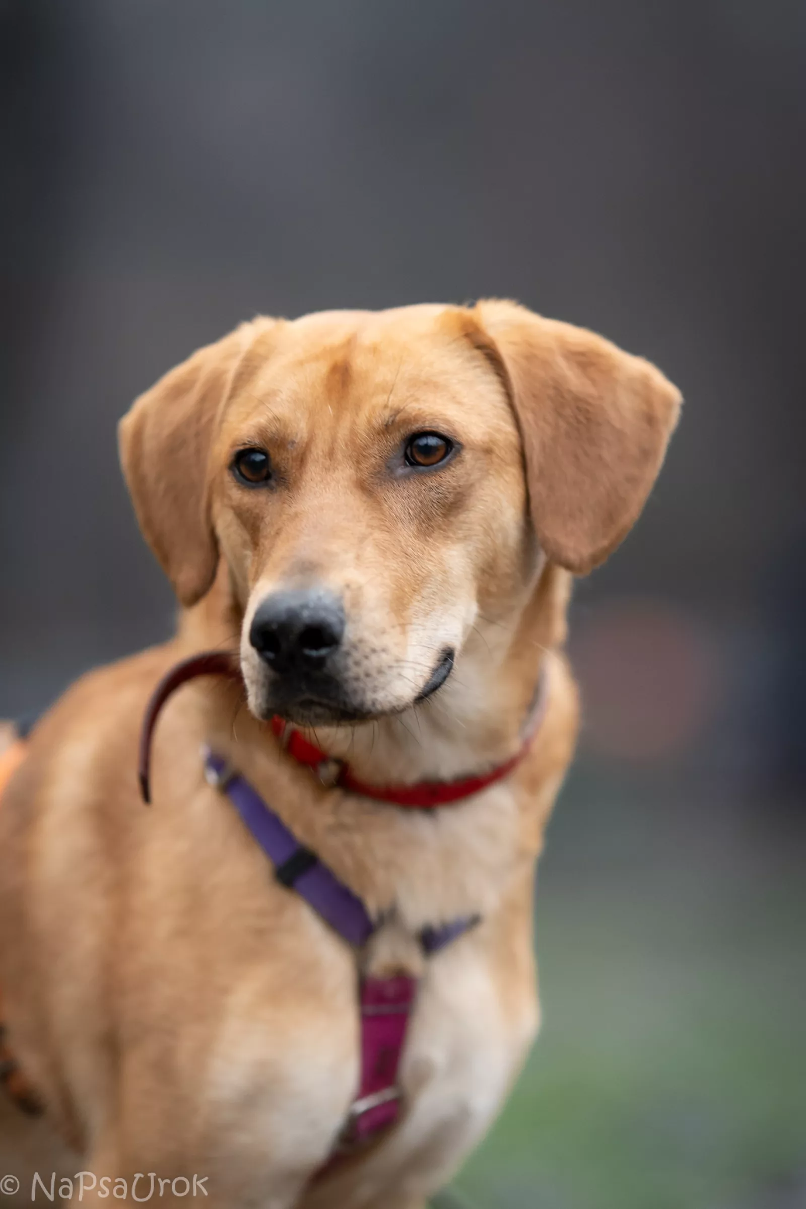 Już przy pierwszym spotkaniu przywitał nas radośnie – sam nadstawiał się do głaskania i bez problemu włożył główkę w szelki. Na spacerze zachowywał się, jakbyśmy znali się od zawsze – ciekawski, przytulaśny, radosny, pełen życia. Uwielbia eksplorować i korzysta z każdej chwili na odkrywanie świata, a że jest młodziutkim psiakiem, to ciekawi go dosłownie wszystko, więc wszystko wymaga skrupulatnego obwąchania. Czasem potrafi pociągnąć, kiedy coś go zafascynuje, ale szybko wraca do kontaktu z opiekunem, reaguje na przywołanie.