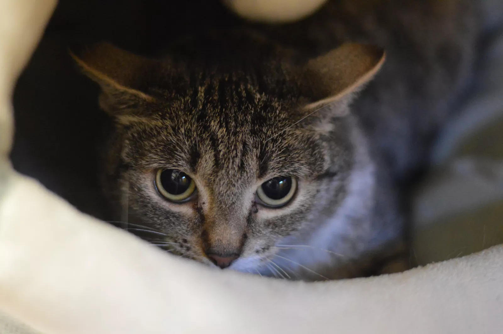 Hera to młoda, nieco wycofana koteczka, która potrzebuje czasu by oswoić się z nową sytuacją i zaufać człowiekowi.