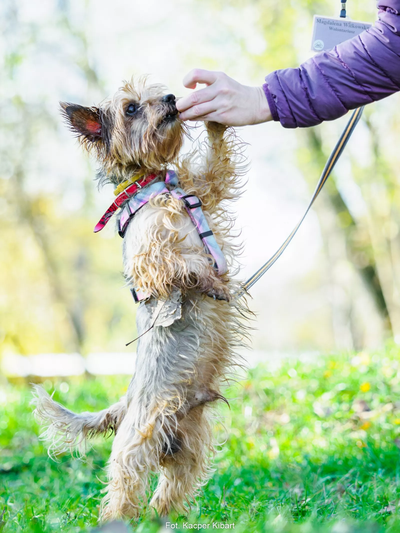 Cukier trafił do nas po śmierci opiekunki. Jest miły i łagodny do ludzi, bez problemu pozwala się głaskać i dotykać, ale sam na razie nie prosi zbytnio o głaskanie. Jest pieskiem – jak na yorka :) – raczej spokojnym, stabilnym i mało szczekliwym.