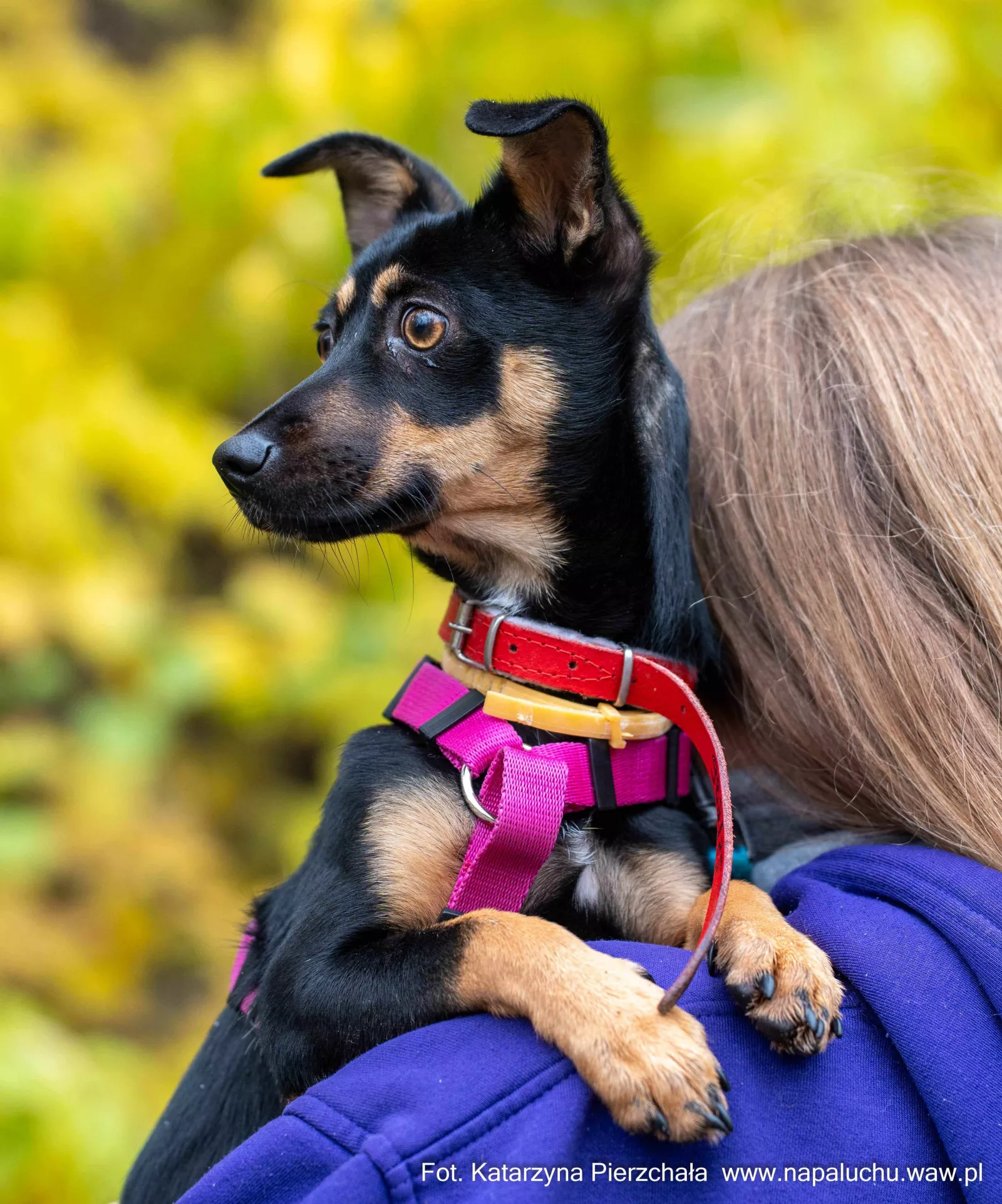 Nie znamy historii tego psiego dziecka i nie wiemy, dlaczego pierwsze miesiące życia przyszło spędzać jej za kratą boksu. Malutka póki co kiepsko znosi swoją nową rzeczywistość - jest niepewna, z jednej strony chce zaufać, z drugiej tak jakby cały czas bała się, czy ludzka ręka aby na pewno nie zrobi jej krzywdy… Na szczęście po kilku minutach spędzonych razem w boksie Figa podchodzi do nas i pozwala założyć sobie szeleczki, choć na spacer poza schronisko cały czas najchętniej wynoszona jest na rękach. Dopiero z dala od schroniskowego zgiełku potrafi trochę się zrelaksować, choć wciąż nerwowo rozgląda się dookoła i nasłuchuje…
