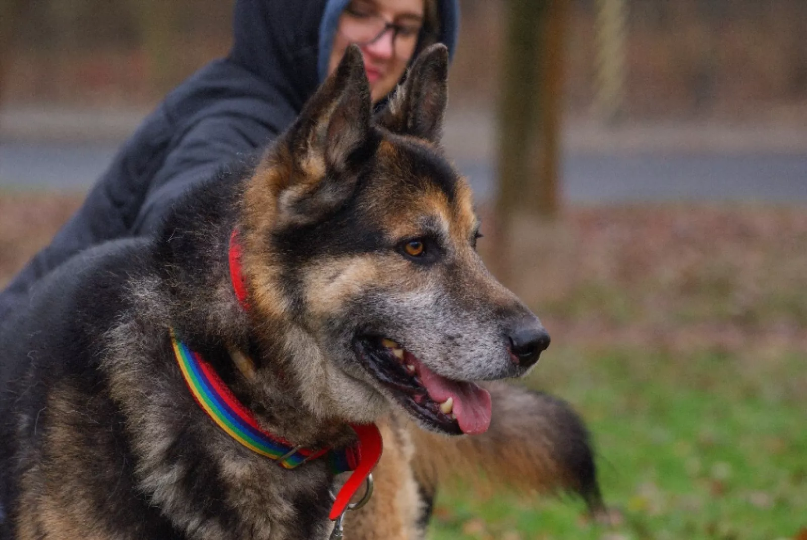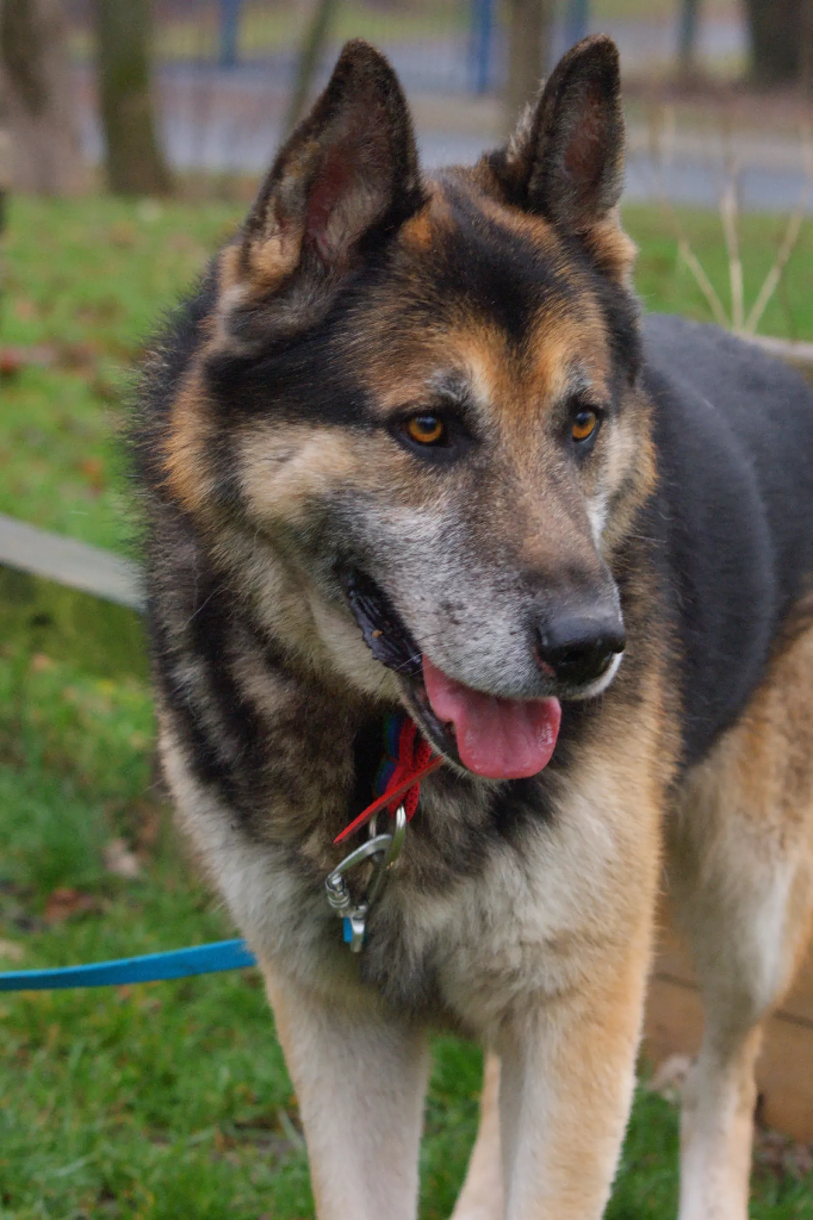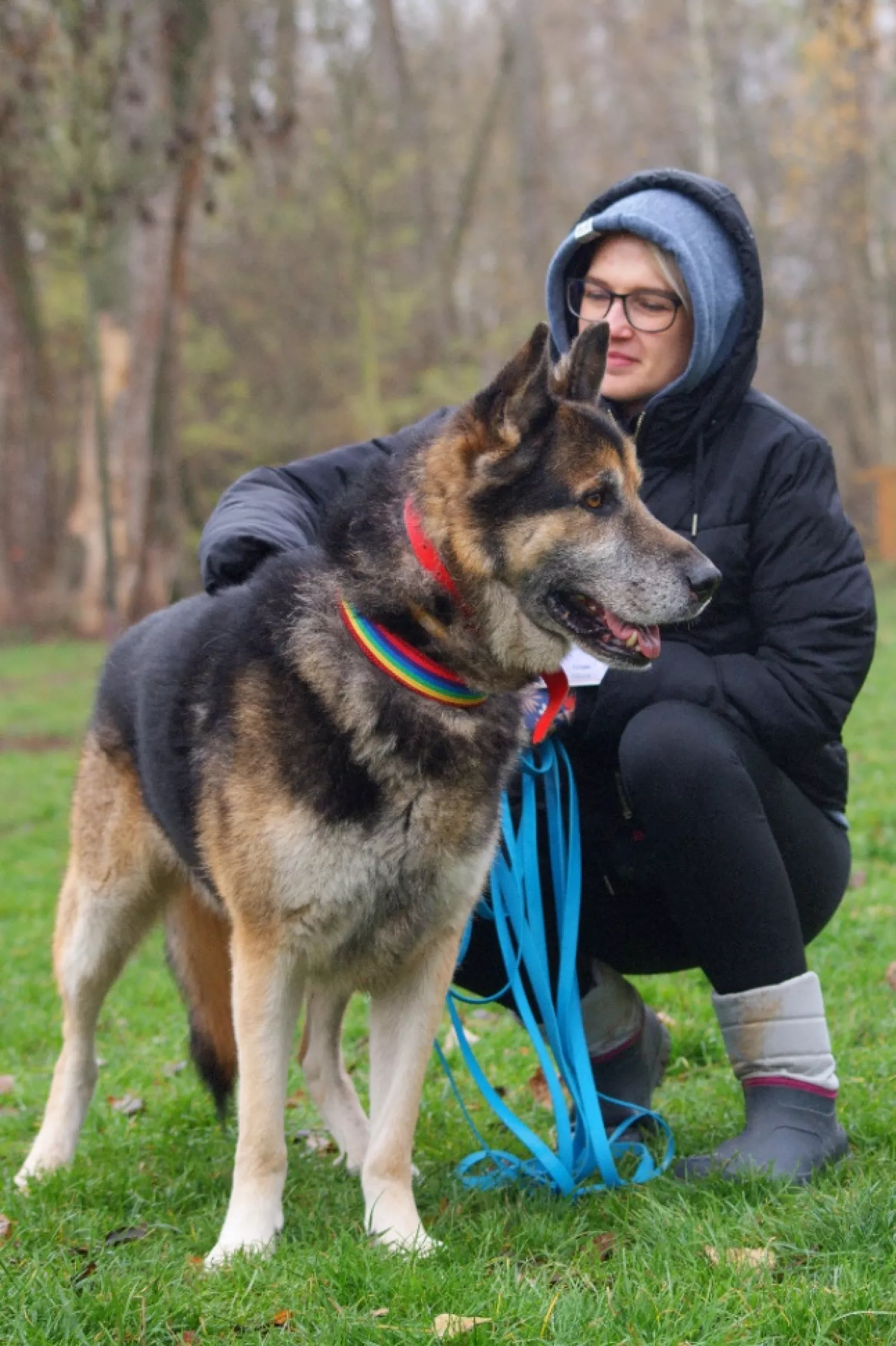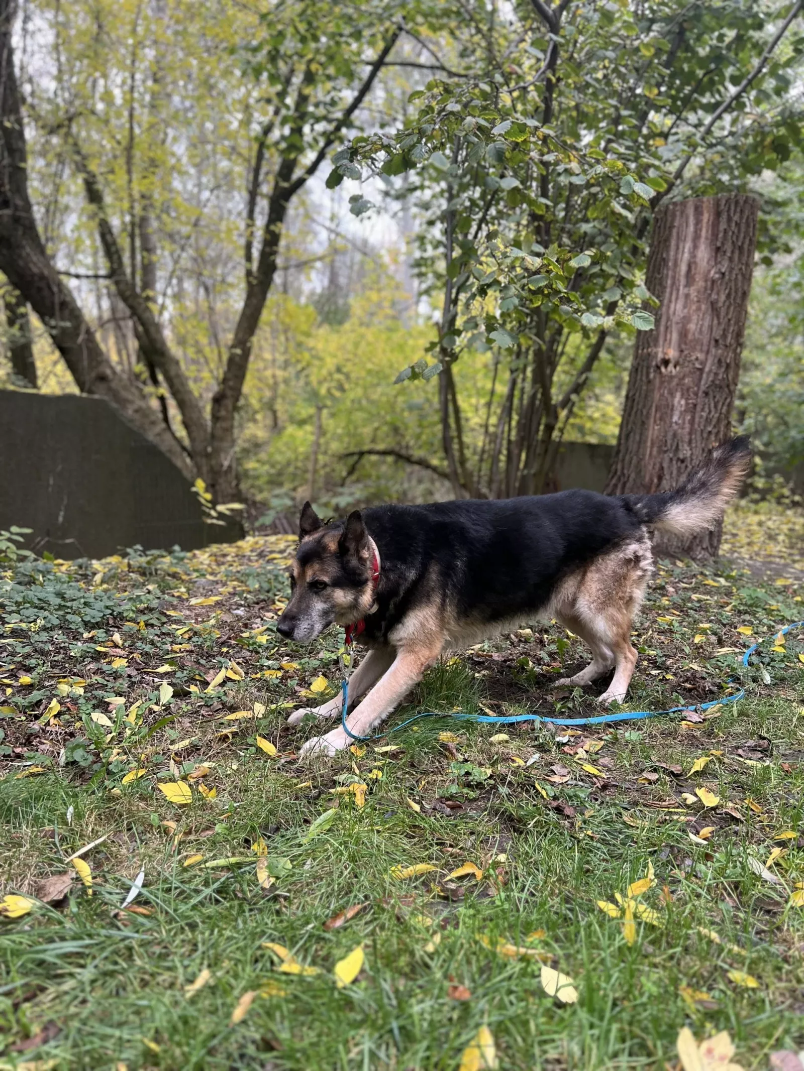 Jest w dobrej kondycji fizycznej, a jego spokojne zachowanie zdradza, że wcześniej żył u boku człowieka. Na spacerach pokazuje swoją najlepszą stronę — pięknie chodzi na smyczy, nie ciągnie, uważnie reaguje na opiekuna i sprawia wrażenie psa, który naprawdę lubi wspólne, spokojne spacery. To taki towarzysz, z którym można po prostu iść przed siebie i złapać oddech.