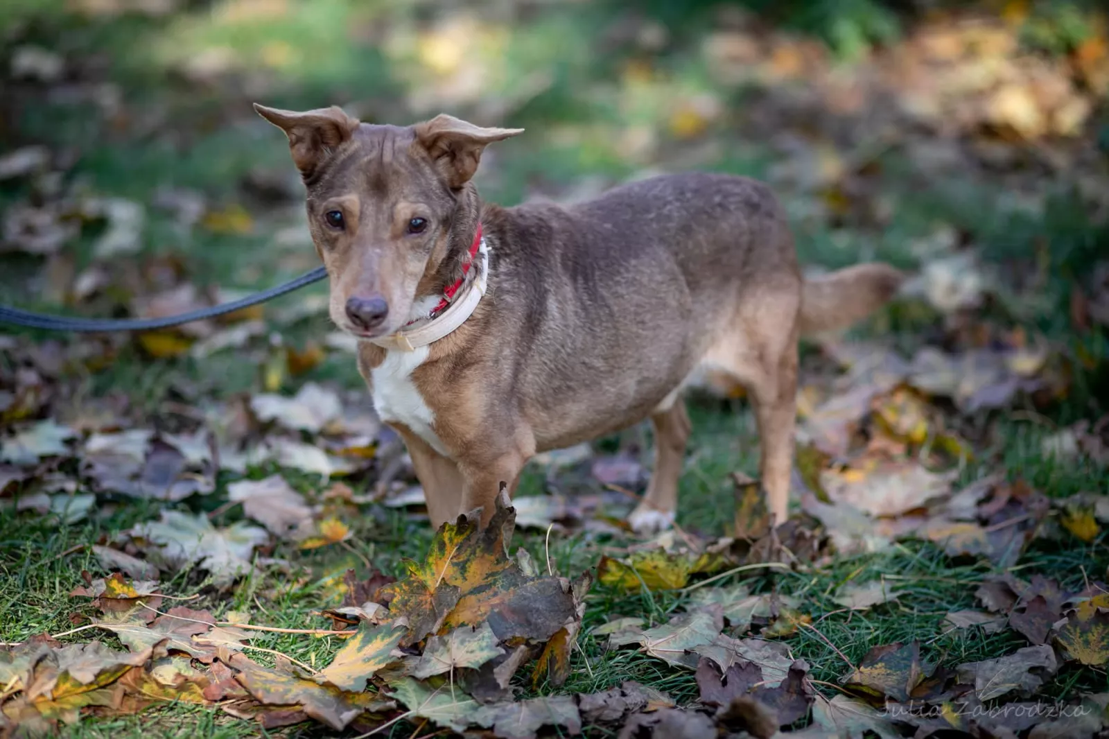Wiluś niedawno do nas trafił i nadal się poznajemy. Wygląda na przemiłego gościa! Chętnie idzie na spacer, lubi ludzi, z psami dogaduje się różnie. Póki co w boksie mieszka sam. Mimo to ma zadatki na psa niesprawiającego kłopotów, smycz zna, kiedy kucamy, podchodzi i nadstawia główkę do głaskania.