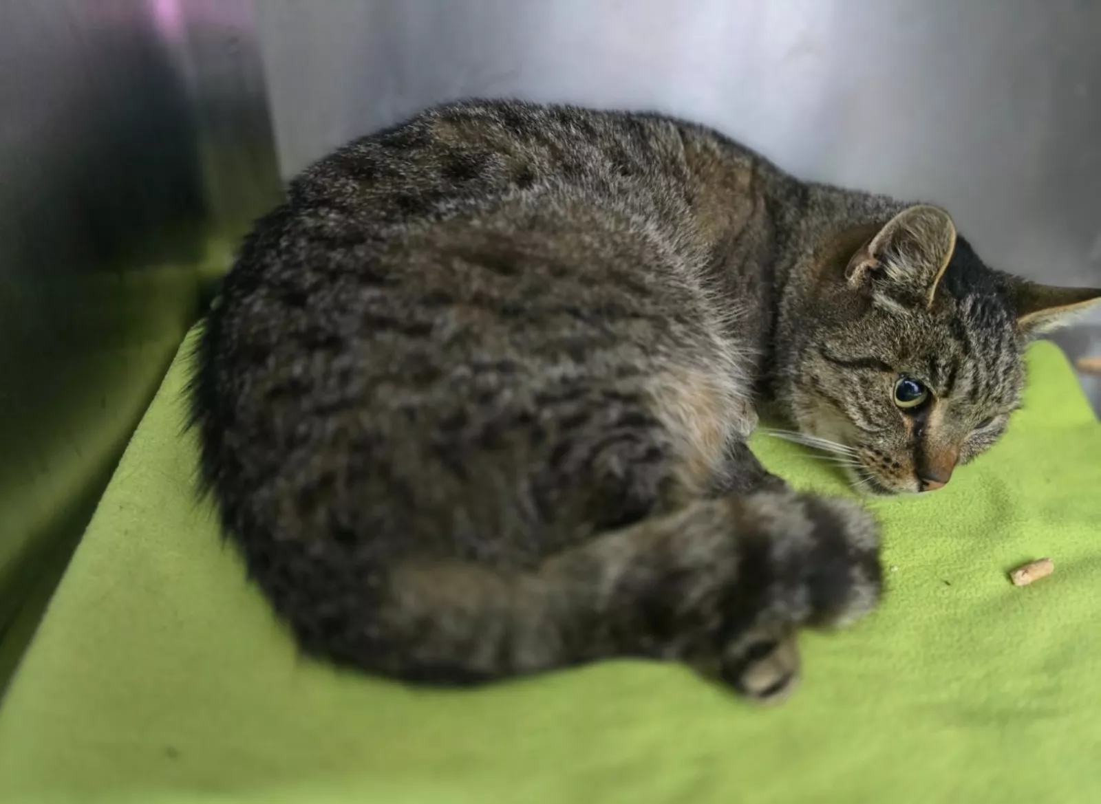 Koteczka zmaga się z wielotorbielowatością nerek i pozostaje pod stałą opieką nefrologa. Obecnie wychodzi z zapalenia płuc – jej stan wyraźnie się poprawia i reaguje na leczenie.