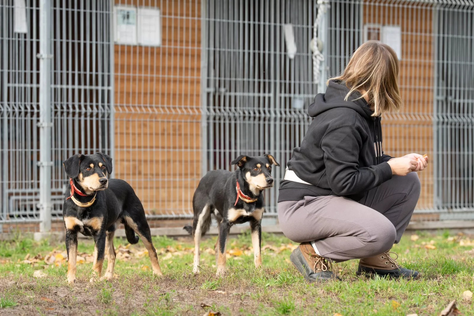 Pewnego ponurego, jesiennego poranka, pracownicy schroniska zauważyli dwa psy zamknięte w małej klatce porzucone na ulicy pod schroniskiem.