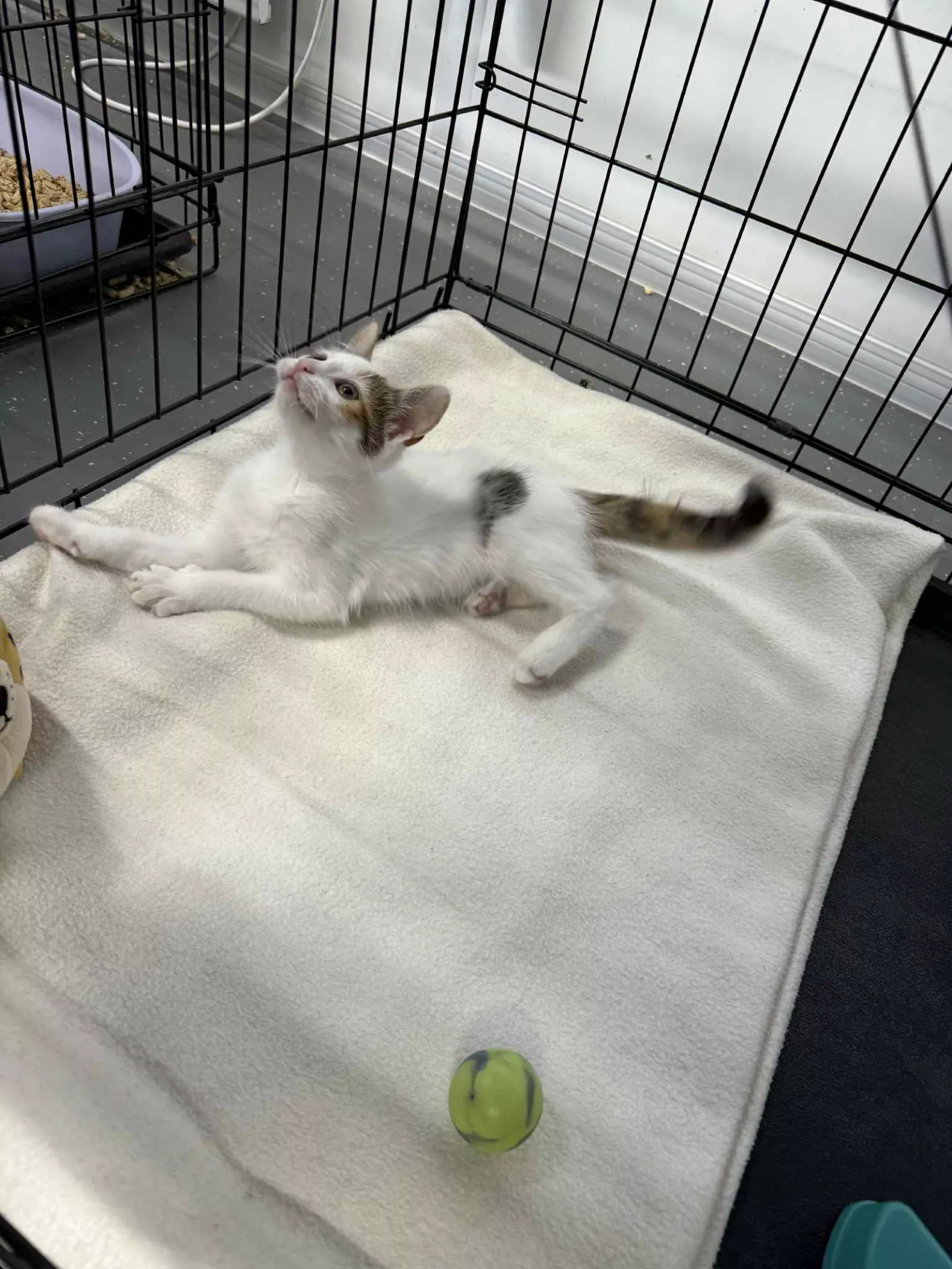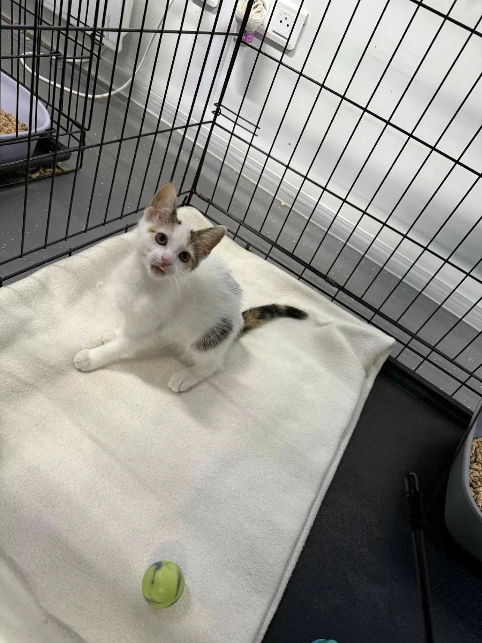 Niestety dziewczynki właśnie wróciły do schroniskowej klatki po dwóch tygodniach w domu z powodu alergii jednego z domowników.