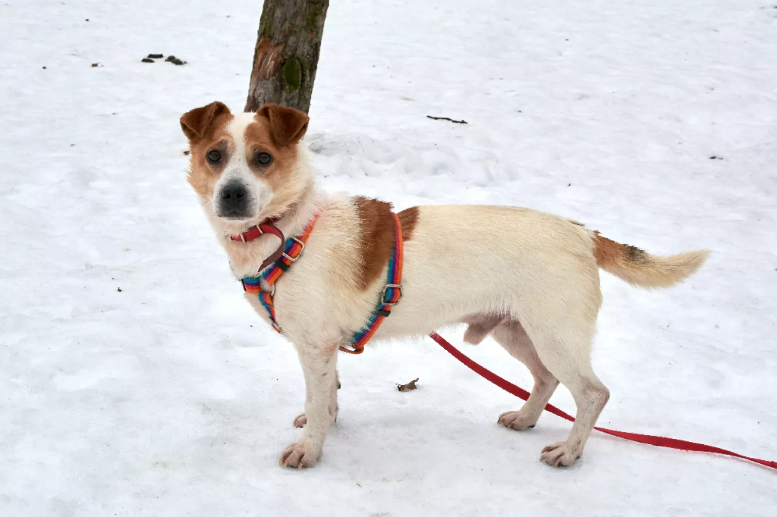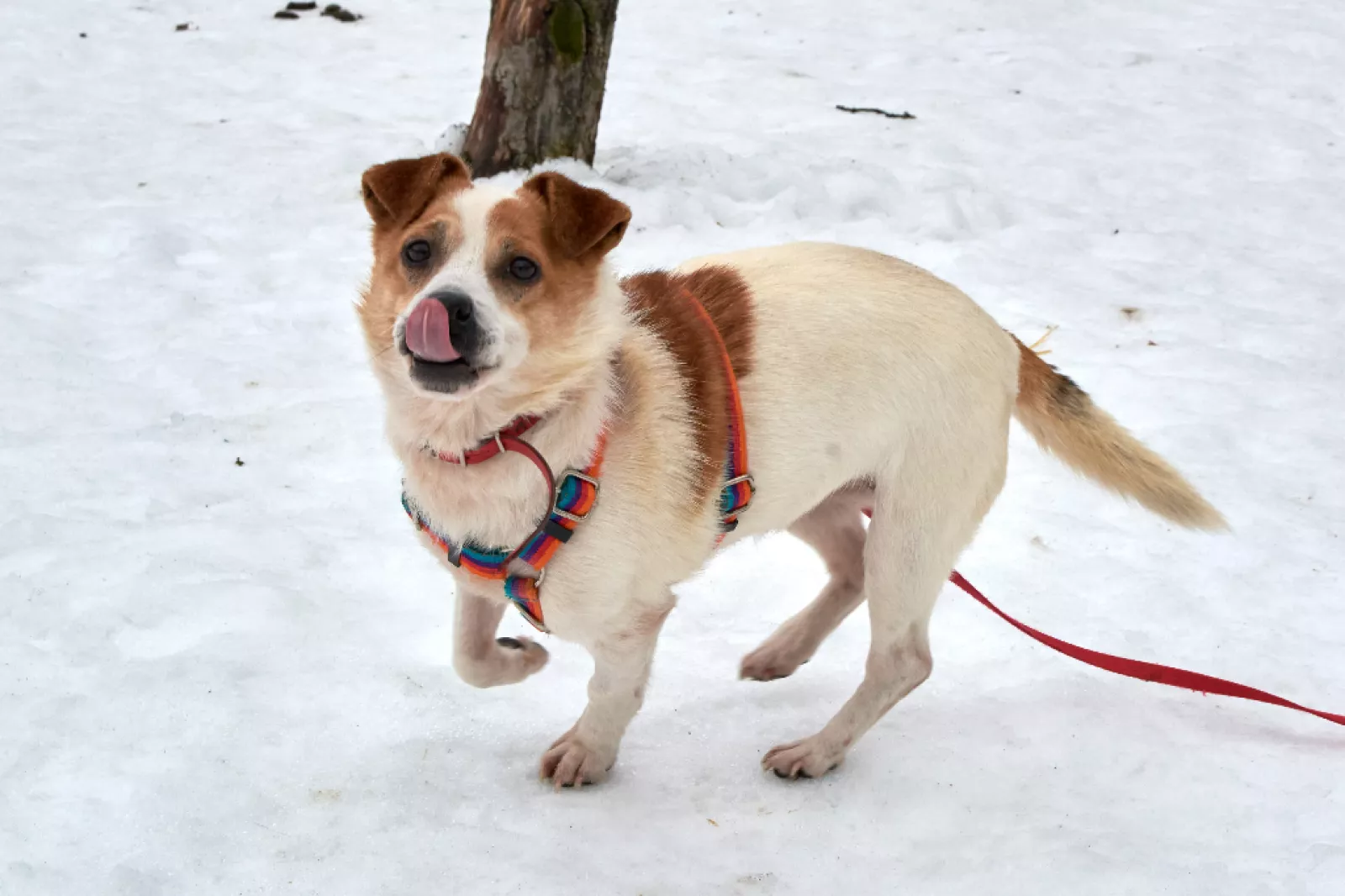 Chętnie biegnie na spacerek, pięknie chodzi na smyczy. Jest radosny i chętny do zabawy.
