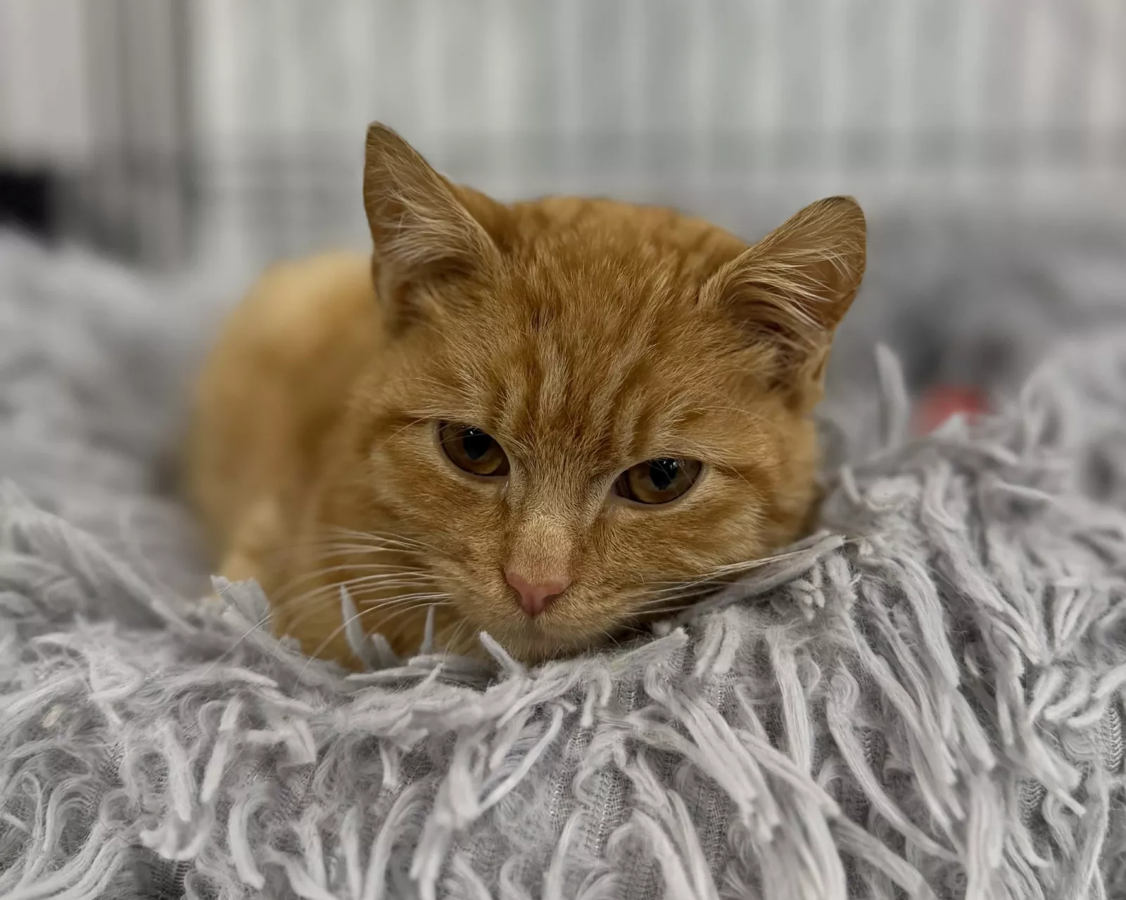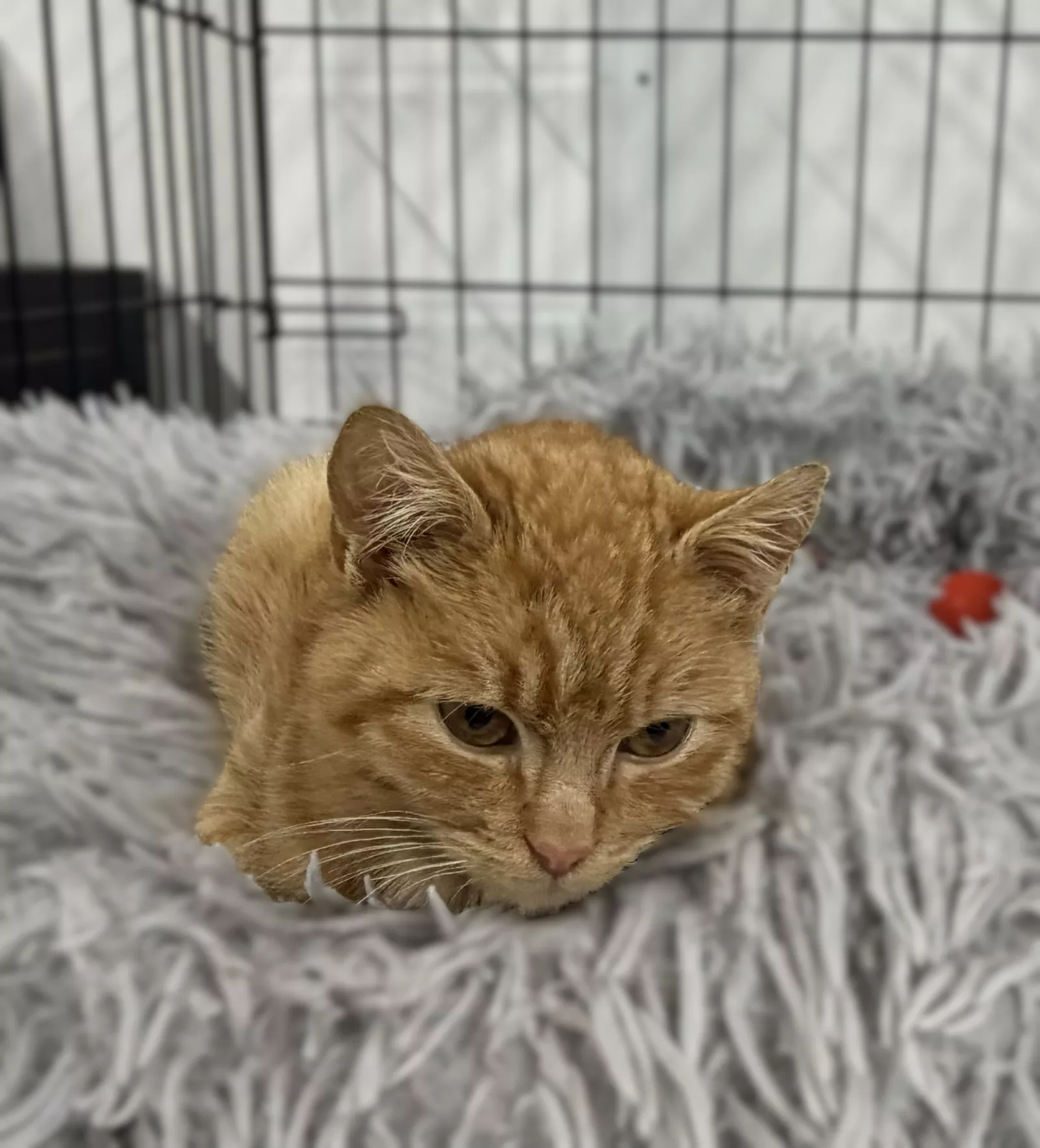 Cheeto to młodziutki, uroczy i pełen ciekawości rudy kocurek.