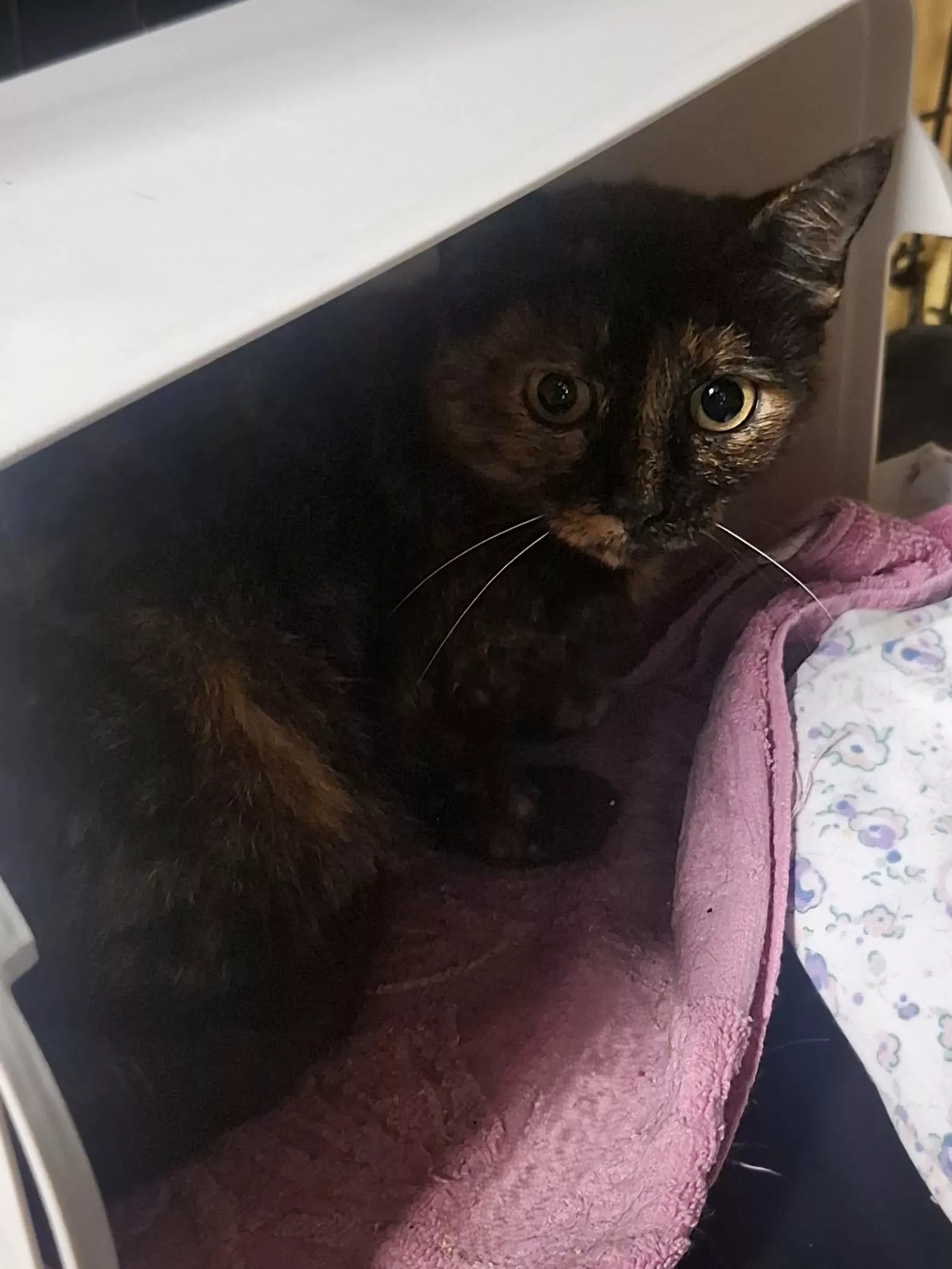 Stjesza to około 5-letnia, piękna kotka, która bardzo przeżywa pobyt w schronisku. Nowe miejsce i otoczenie mocno ją onieśmielają, dlatego na razie stara się trzymać na uboczu i potrzebuje spokoju.