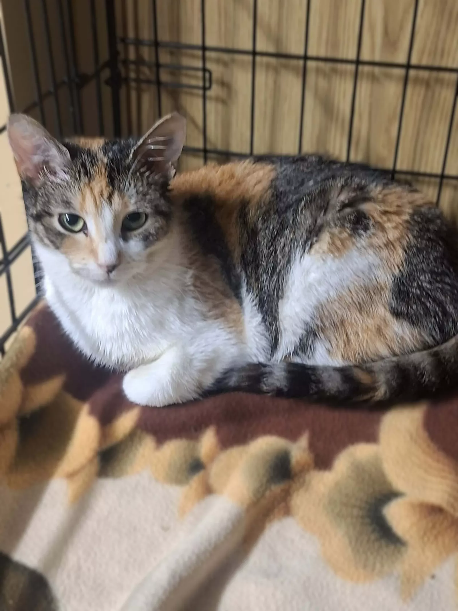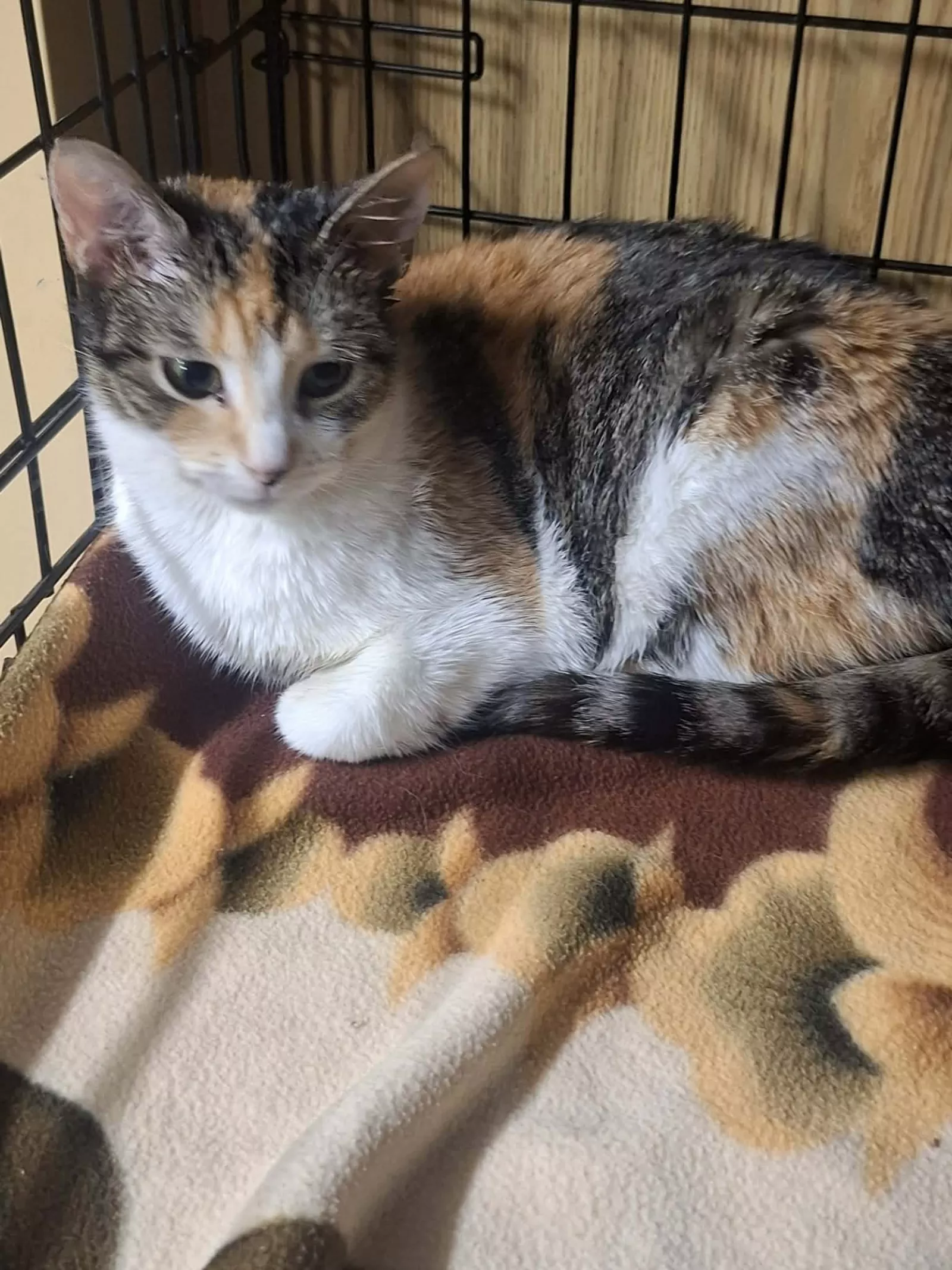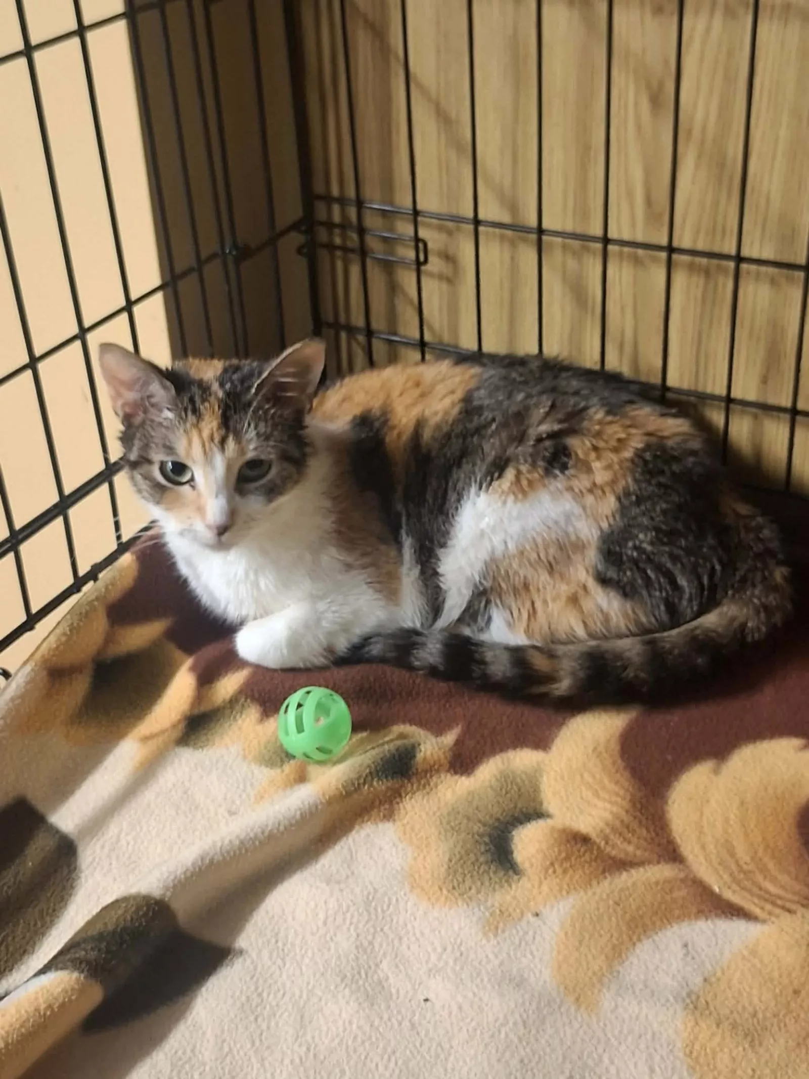 Alisa to około 3-letnia koteczka o pięknym, trikolorowym umaszczeniu. Trafiła do schroniska i wciąż oswaja się z nową sytuacją. Widać, że miejsce, w którym się znalazła, jest dla niej zaskoczeniem.