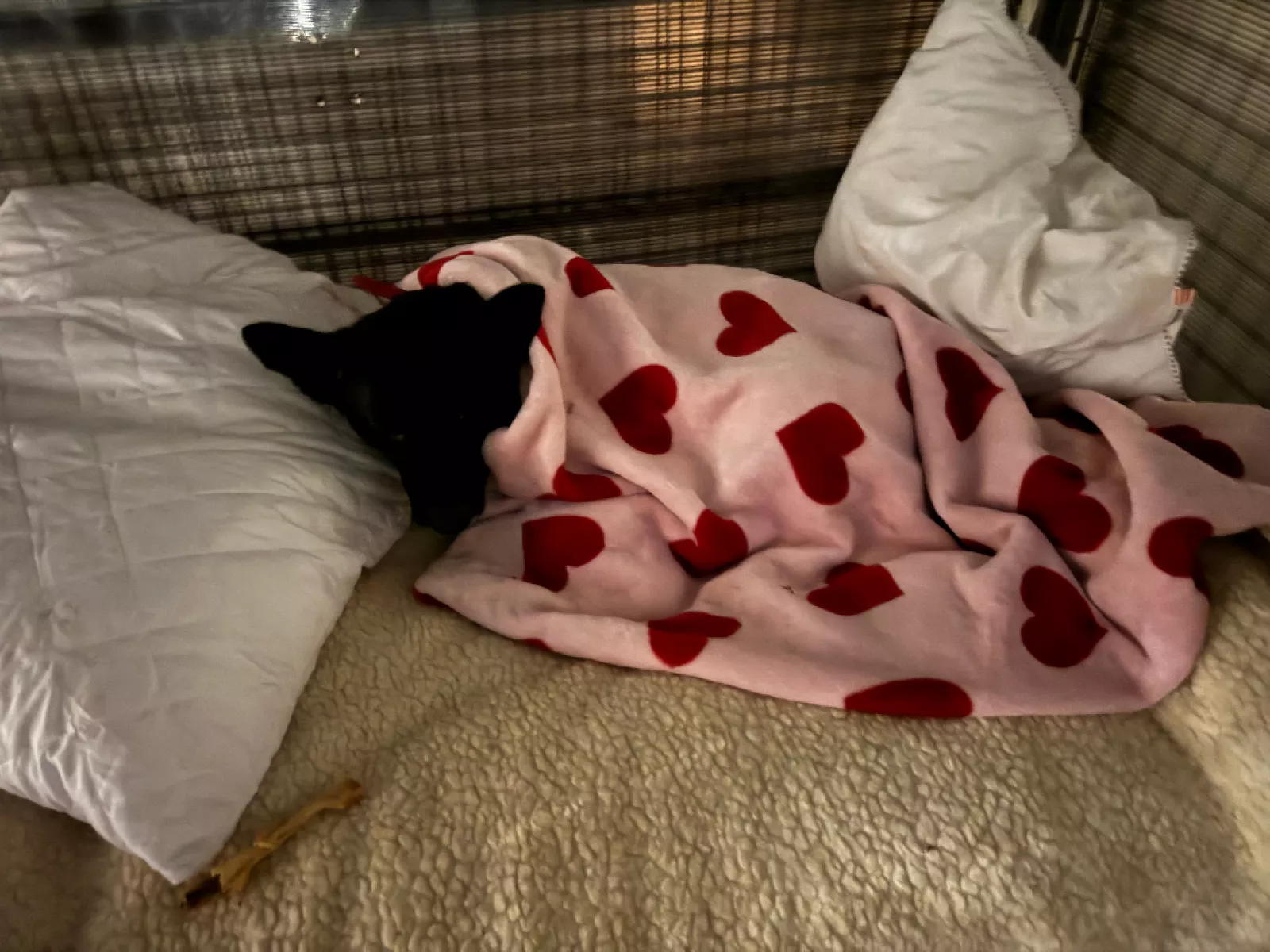 Lucynka uwielbia być przytulana, dotyk daje jej ukojenie. Dobrze dogaduje się z innymi pieskami, jest łagodna i nienarzucająca się. Trafiła do nas razem ze swoim szczeniakiem — już od początku pokazała, jak wielkie ma serce.