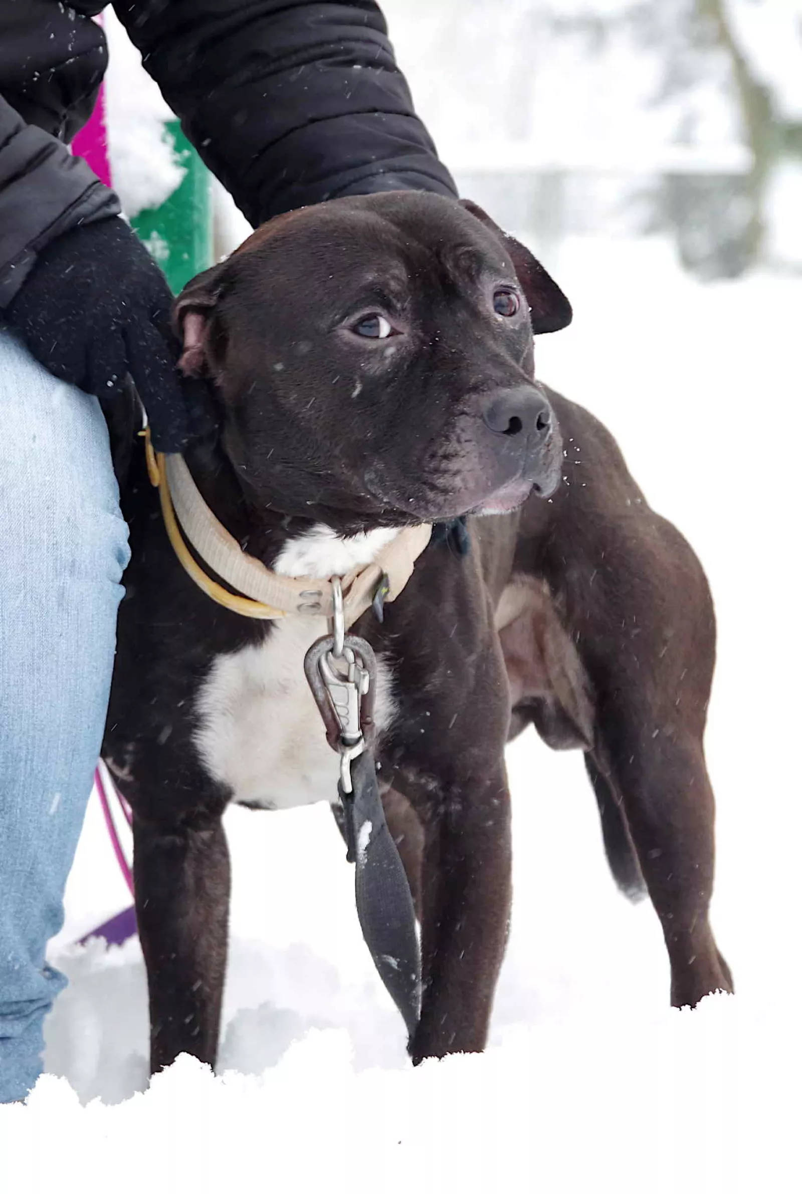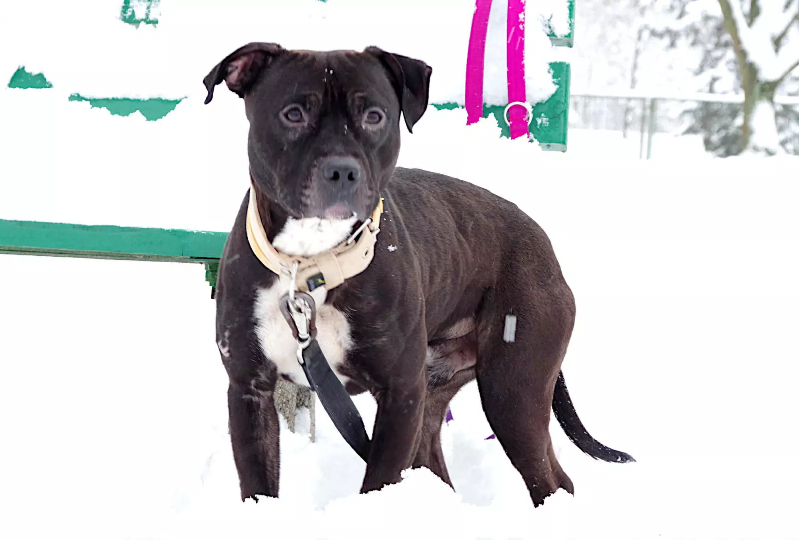 Lucek to uroczy pies w typie pitbulla, który niedawno trafił niedawno pod naszą opiekę. Na ten moment widziimy, że pobyt w schronisku jest dla niego bardzo trudny, w boksie trzęsie się, jest wystraszony i źle znosi obecność innych psów obok siebie. Ożywia się na spacerach, w towarzystwie wolontariuszy. Grzecznie spaceruje, węszy i wesoło bawi się z opiekunami.