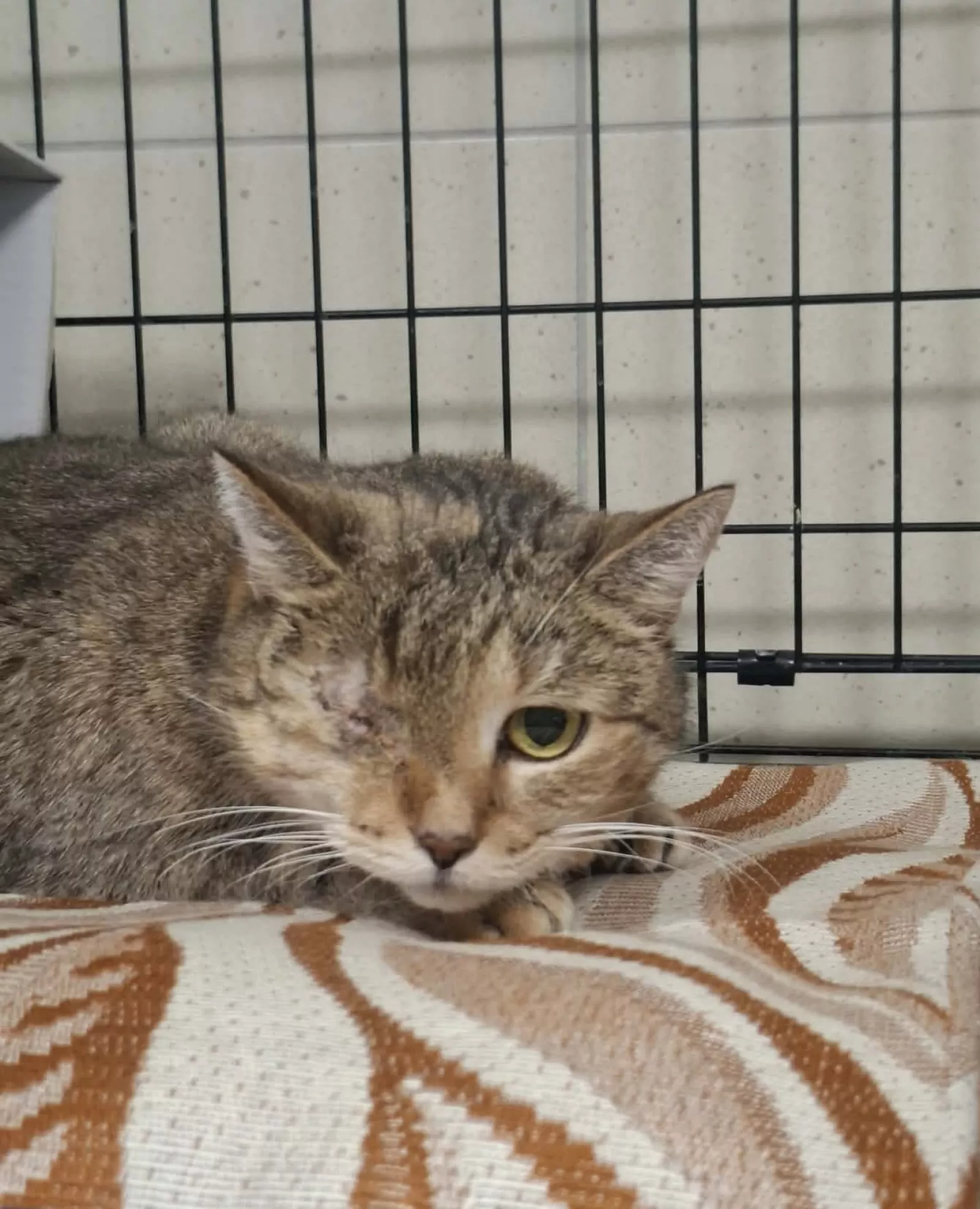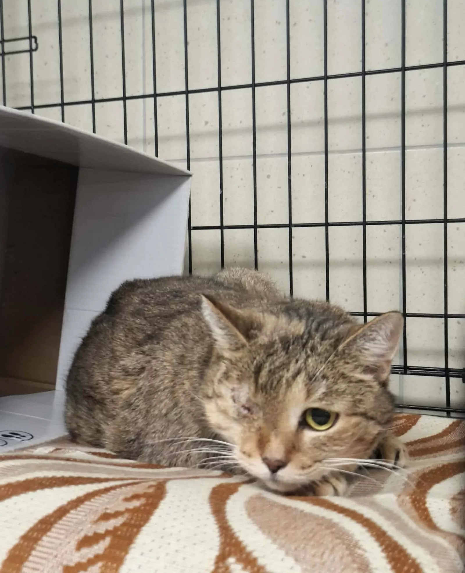 Miranda to bura koteczka, która obecnie przebywa w kocim szpitalu po operacji oka. Jest kotką ostrożną i potrzebuje czasu, aby poczuć się pewnie w nowym otoczeniu. Na początku może wyznaczać granice i potrzebować spokojnej przestrzeni, ale przy cierpliwej i łagodnej opiece stopniowo może otworzyć się na kontakt z człowiekiem.
