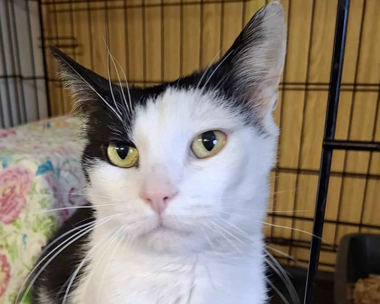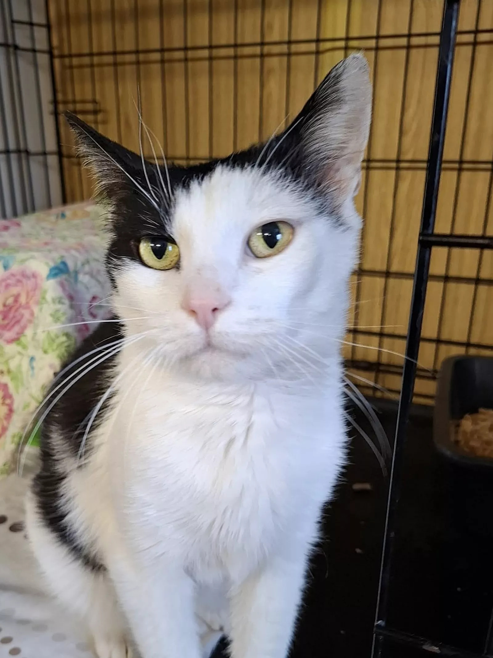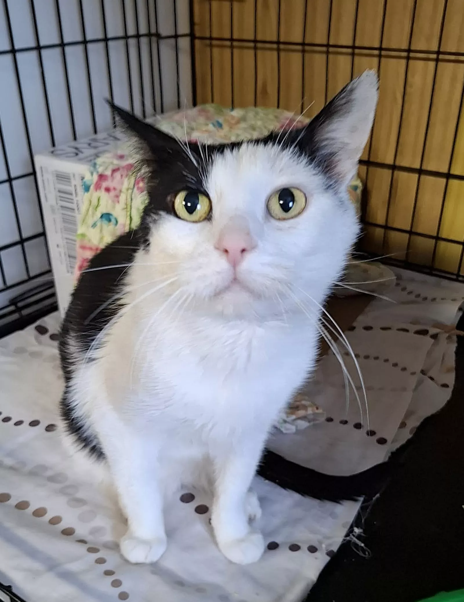 Kacper to biało-czarny, łagodny kocurek. Jest bardzo kontaktowy i wyraźnie nastawiony na relację z człowiekiem - chętnie podchodzi, obserwuje i szuka bliskości.