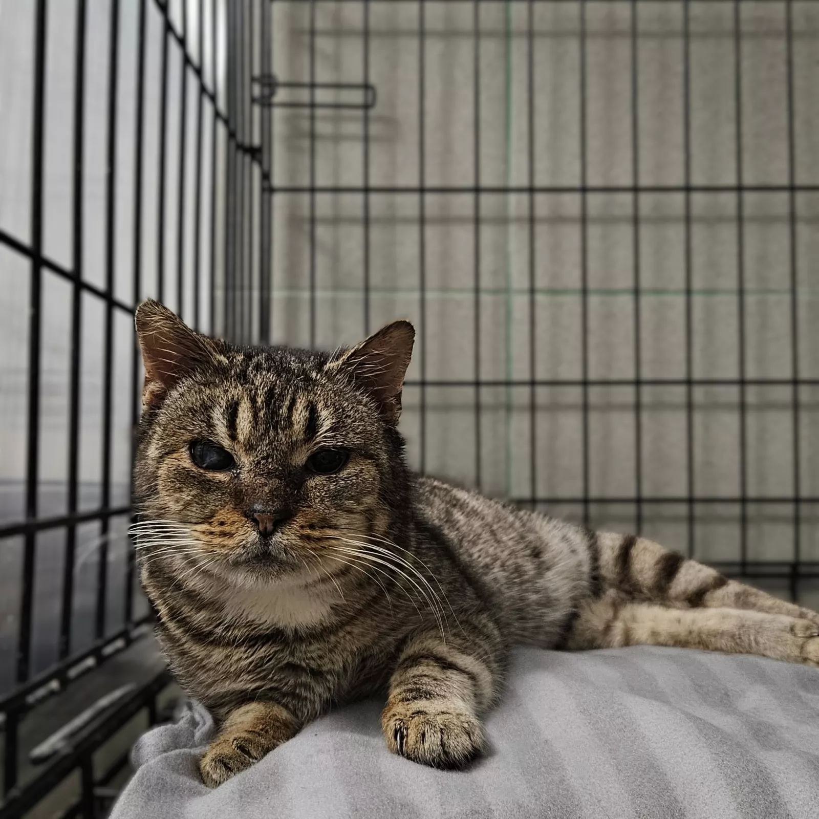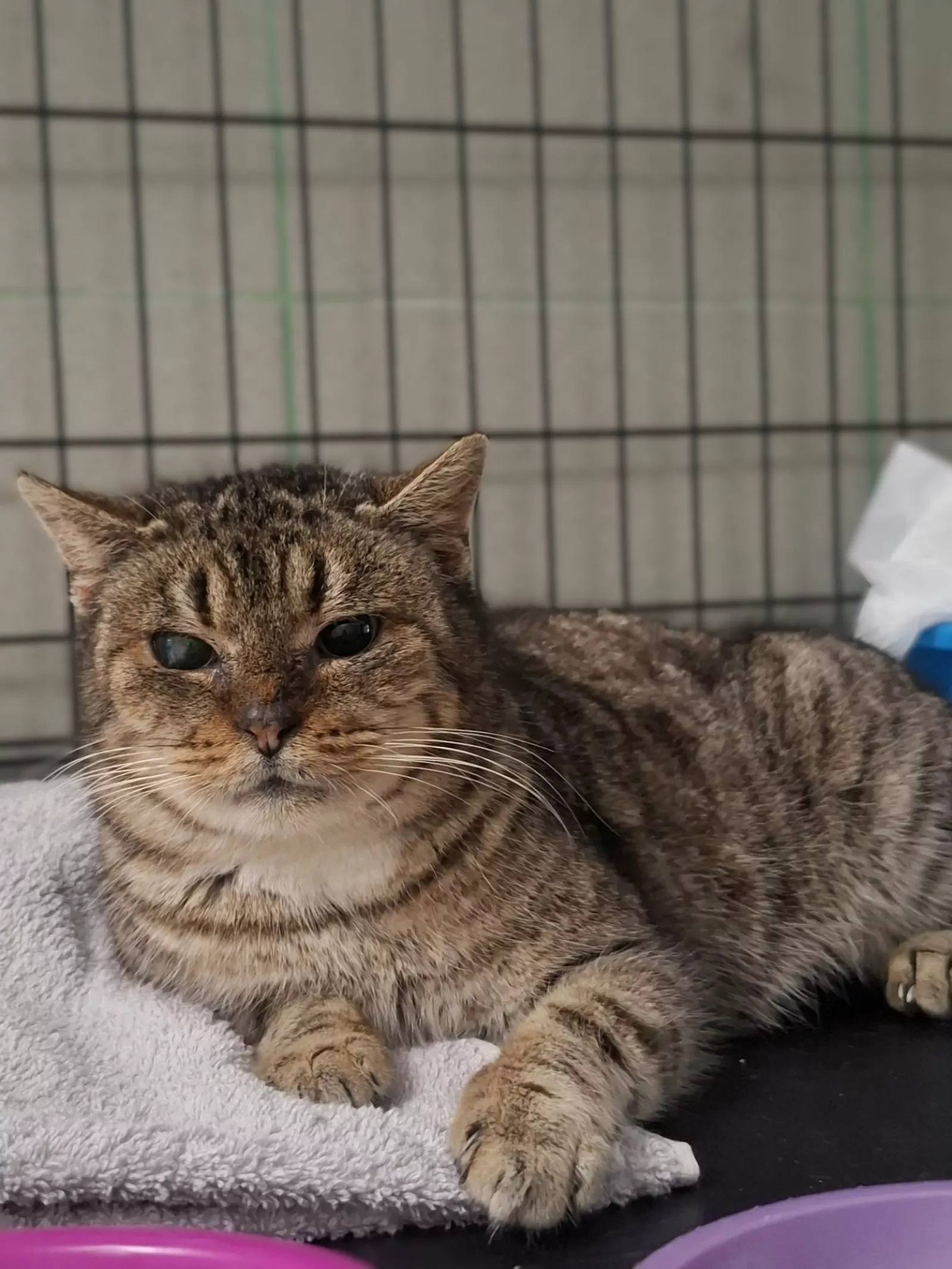 Freya to starsza, bura koteczka o spokojnym, dostojnym usposobieniu. Jest ogromnym miziakiem! Obecnie przebywa w kocim szpitalu, gdzie leczy koci katar i przechodzi pełną diagnostykę. Kicia znacznie szybciej dojdzie do pełni sił we własnym, kochającym domu.